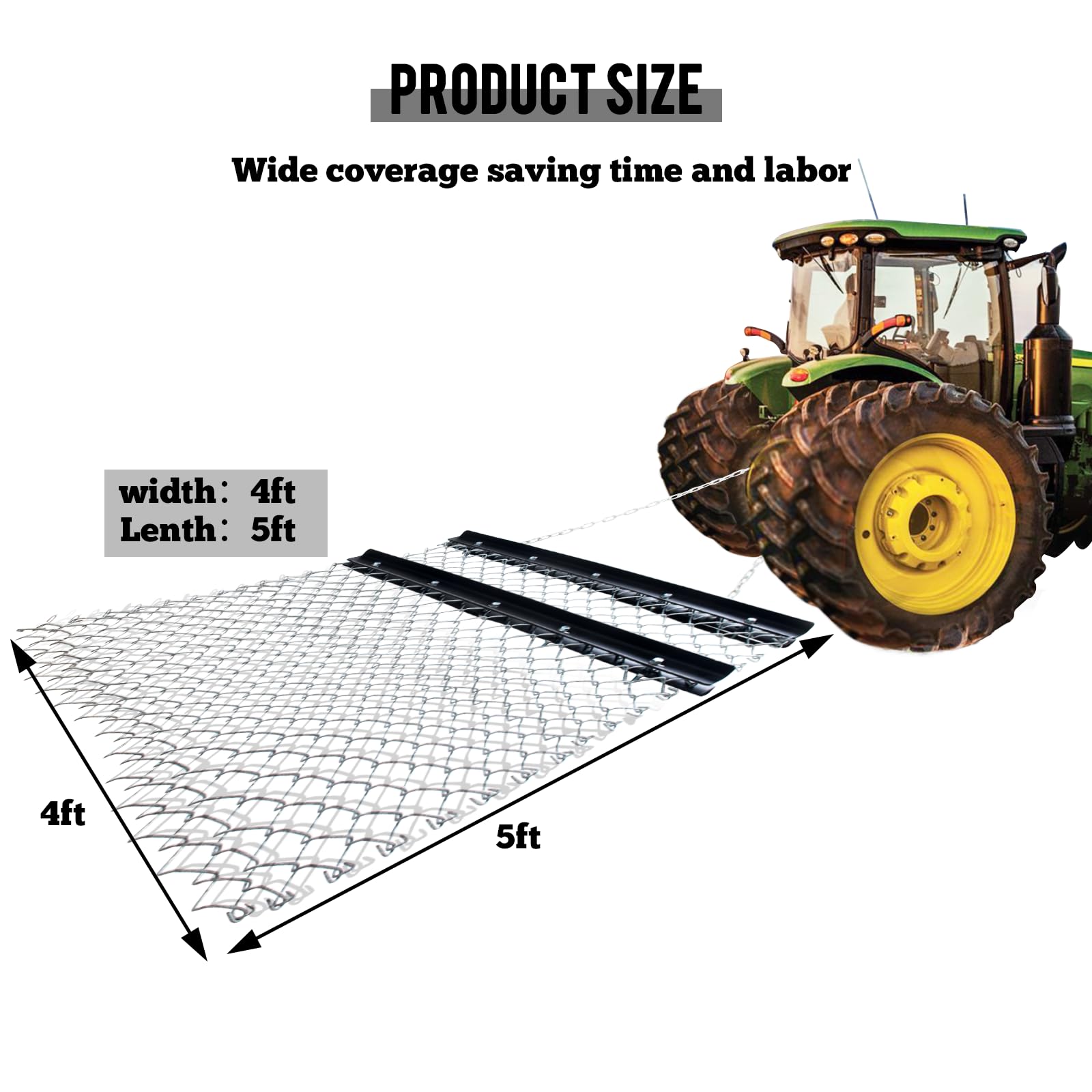 Drag Harrow Size: Measures 4 x 5 feet with a 20 square foot coverage area for fast and effective leveling