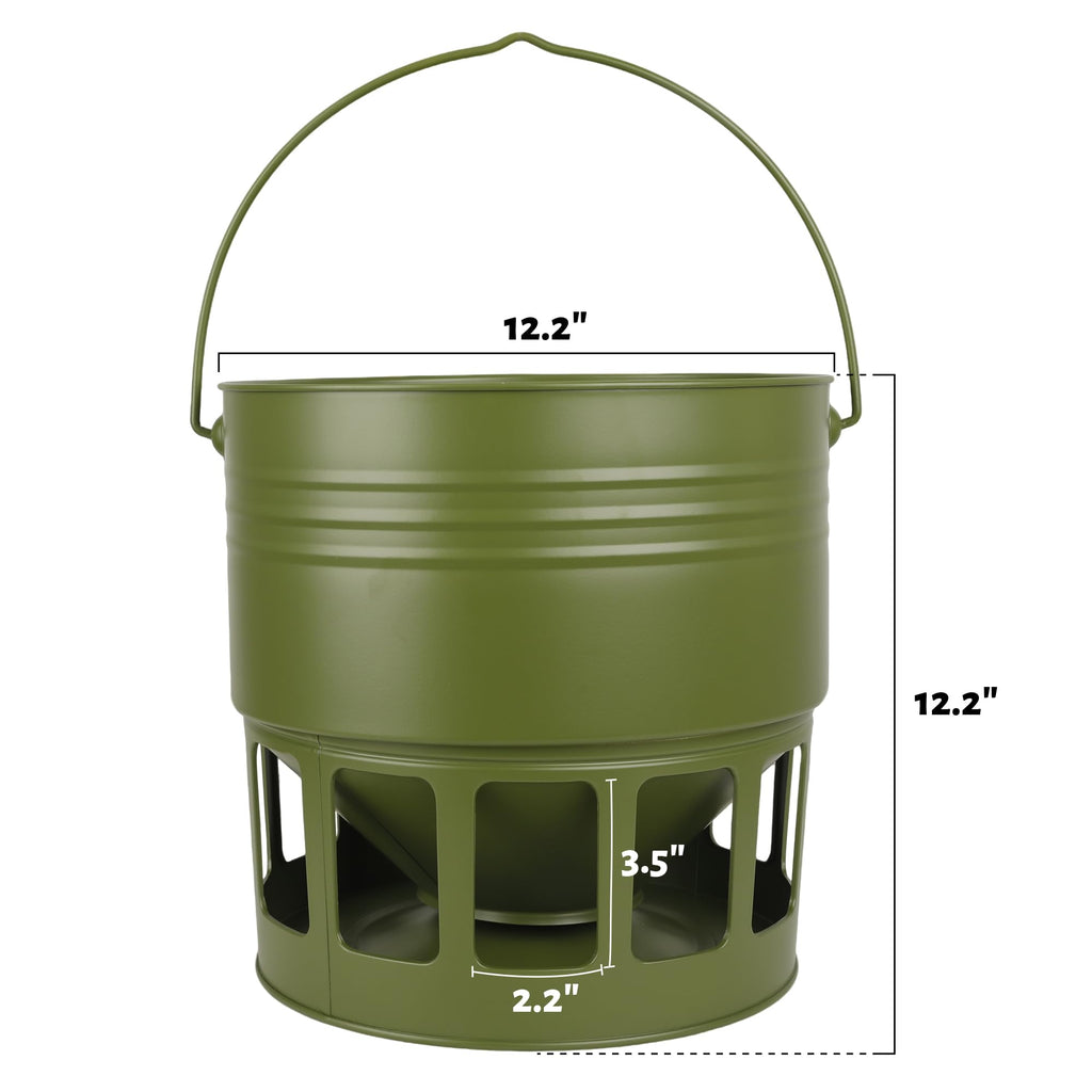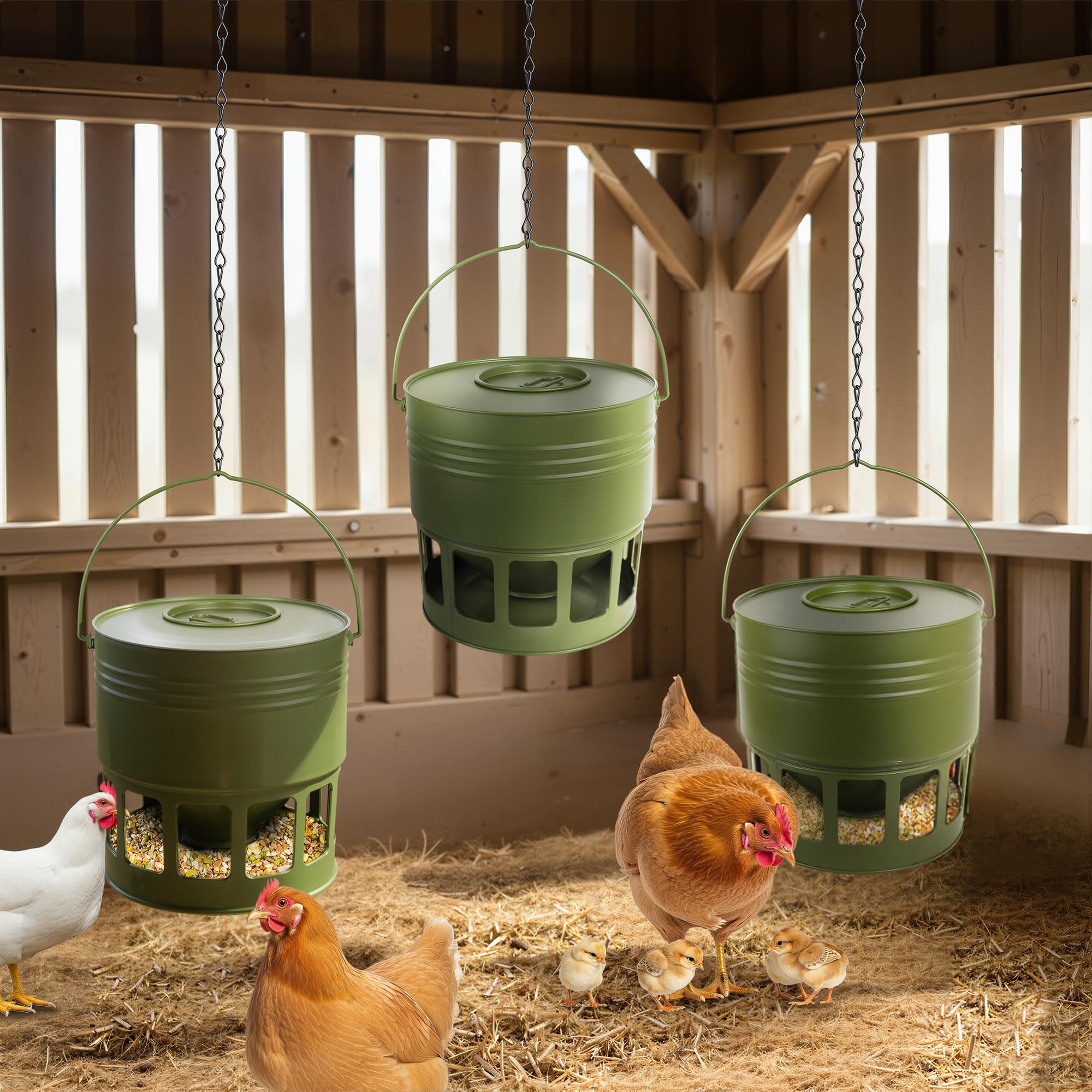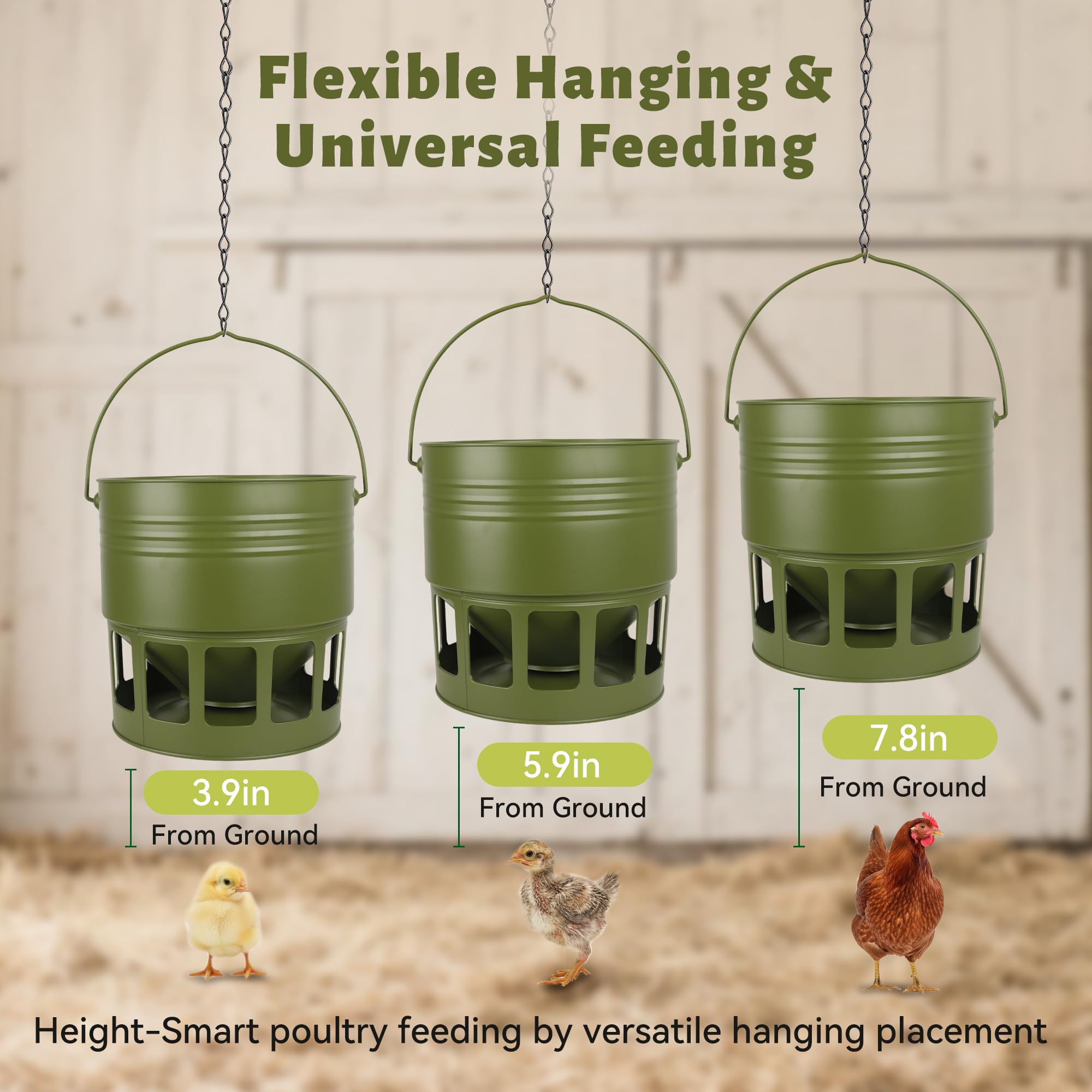 Flexible Hanging & Universal Feeding: Easily hang this feeder at the right height for chicks, hens, or roosters. No assembly needed—just use the built-in handle to attach it securely to coops, fences, or rafters.