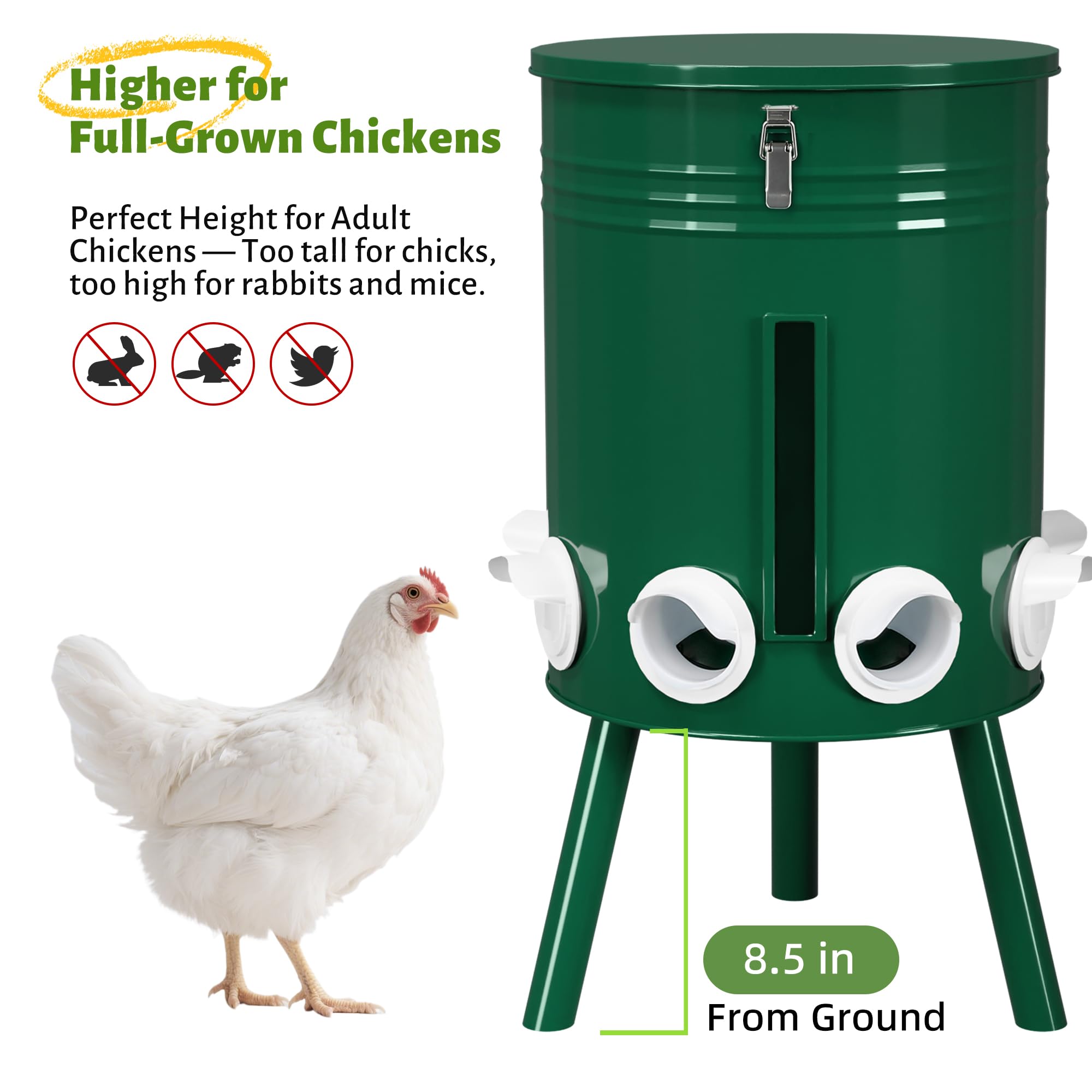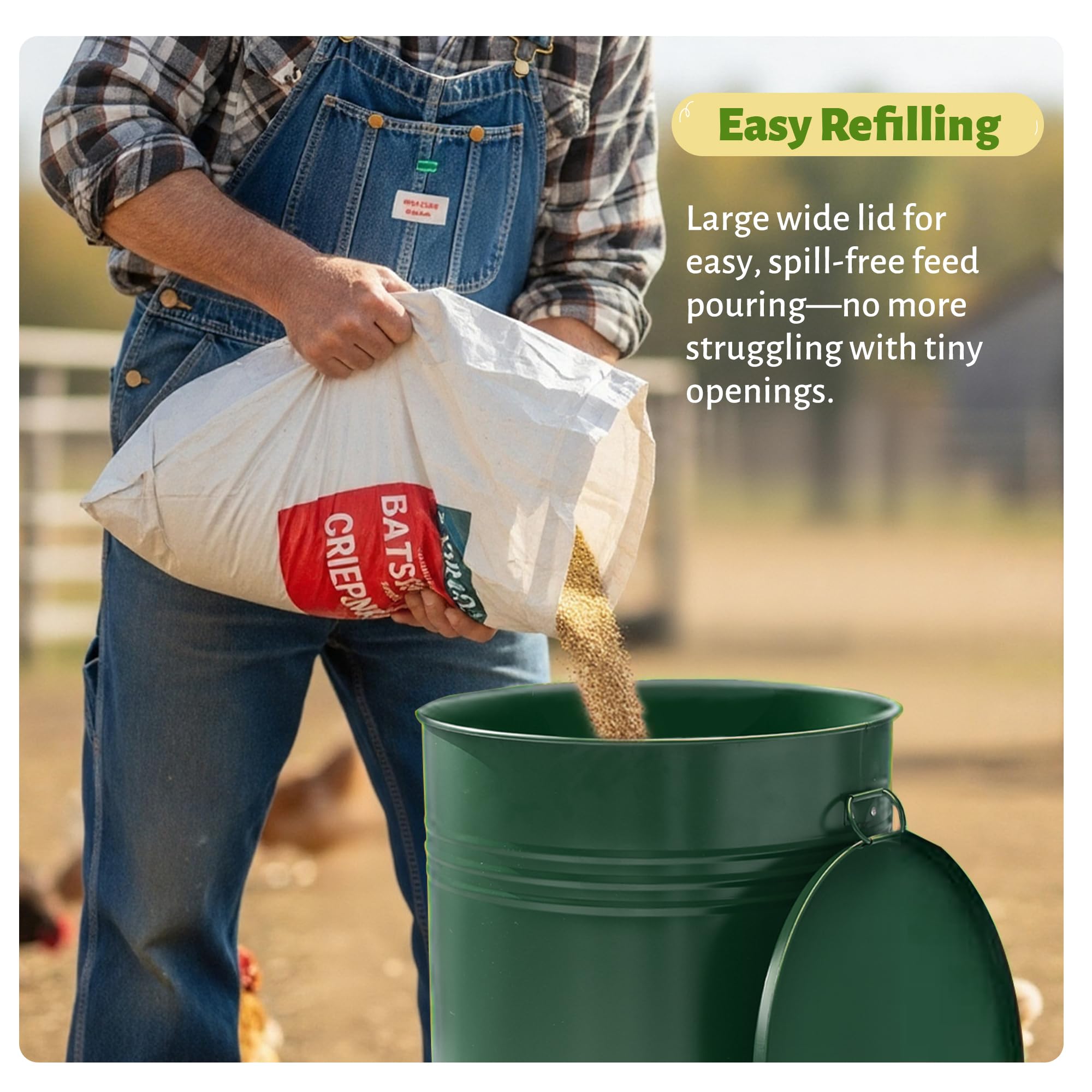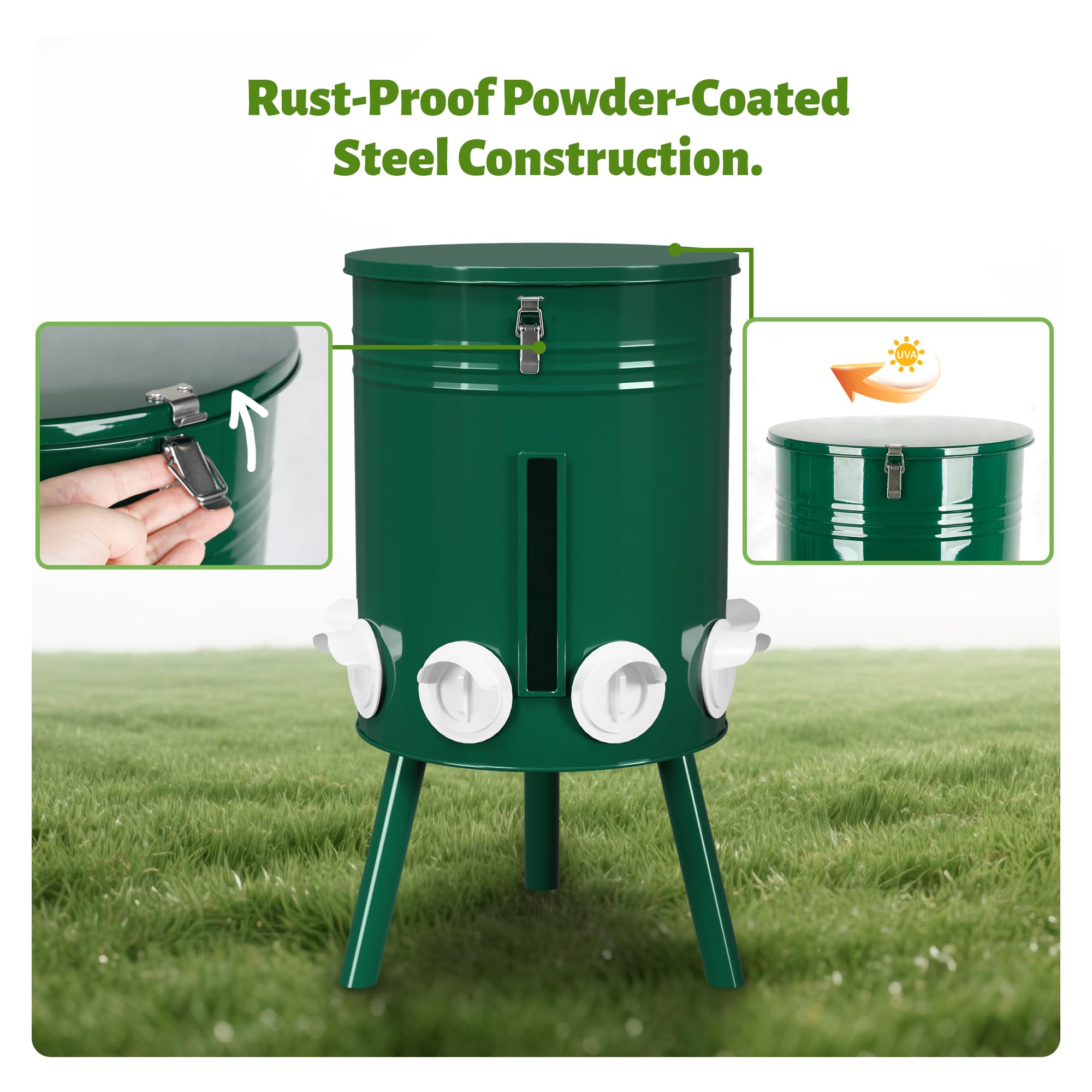 Rust-Proof Metal Construction: Crafted from powder-coated steel, the feeder is resistant to rust and corrosion. Its durable build stands up to daily coop use and tough weather without compromising performance.