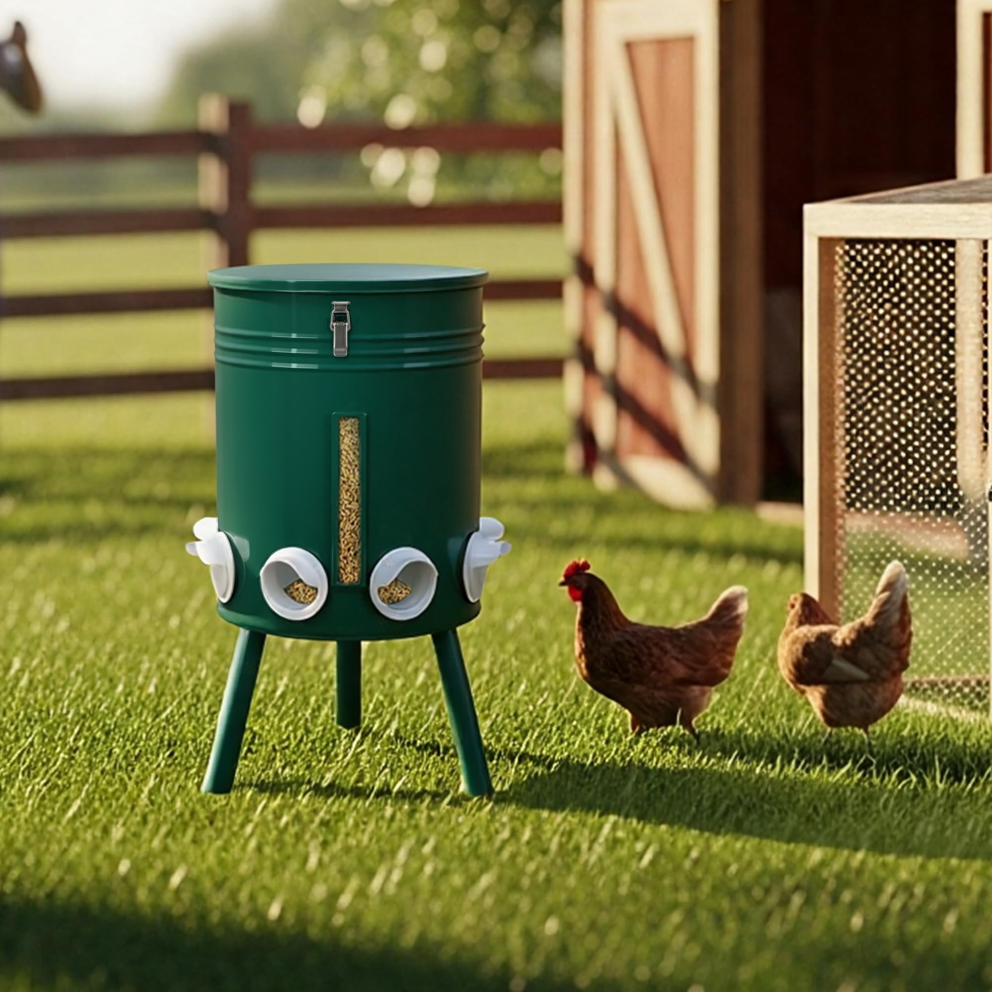 The Kol 50lb Free Standing Gravity Chicken Feeder is designed for efficient outdoor feeding, weather resistance, and low-maintenance operation. Built to serve flocks of all sizes, it keeps feed protected, clean, and easily accessible.