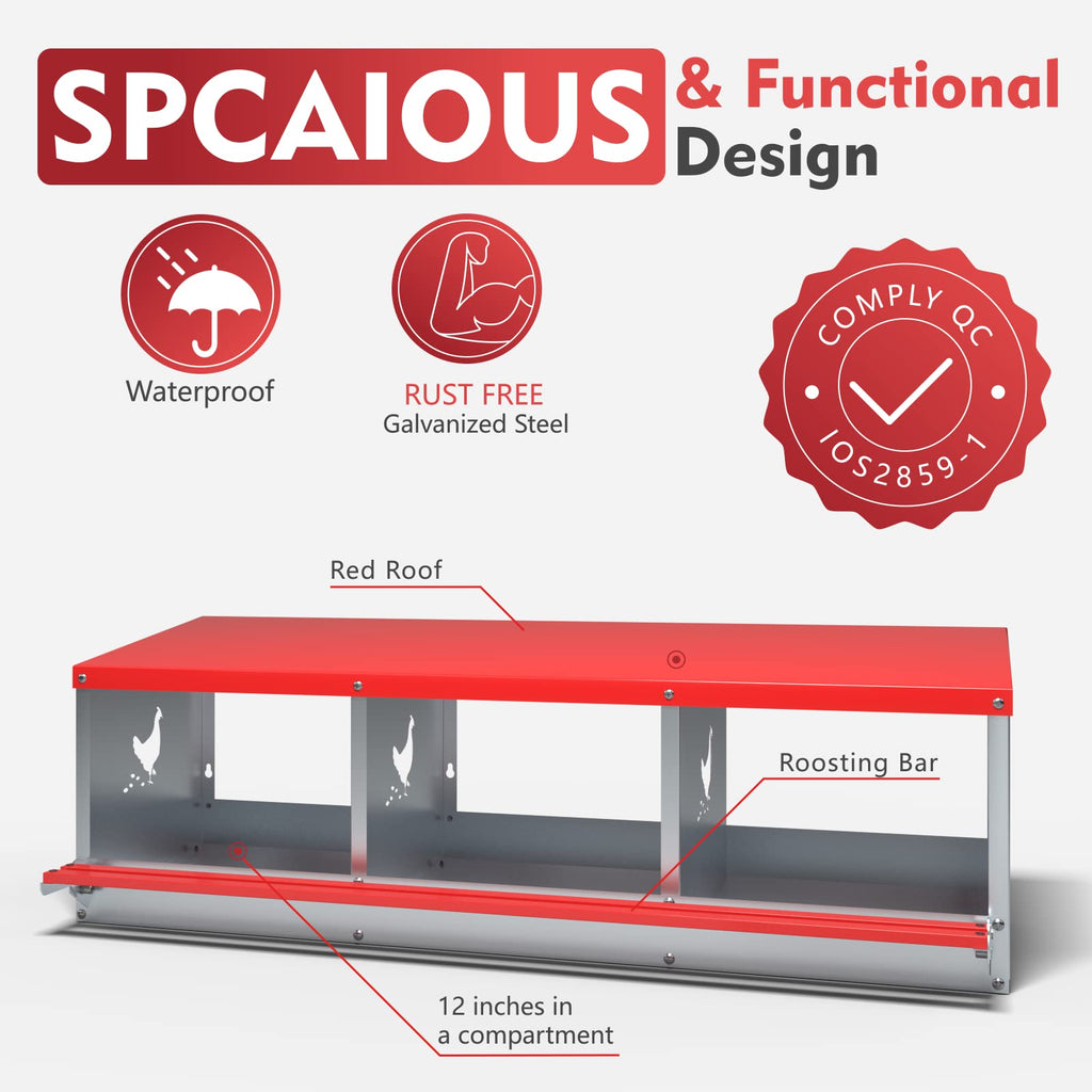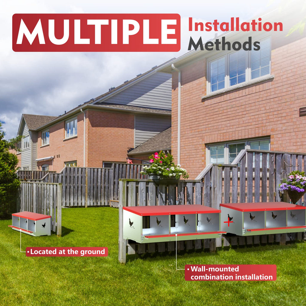 Designed to Boost Egg Production: With three roomy compartments, this box supports larger hens and helps improve laying consistency. Wall mounting protects eggs from being broken while keeping the space secure.