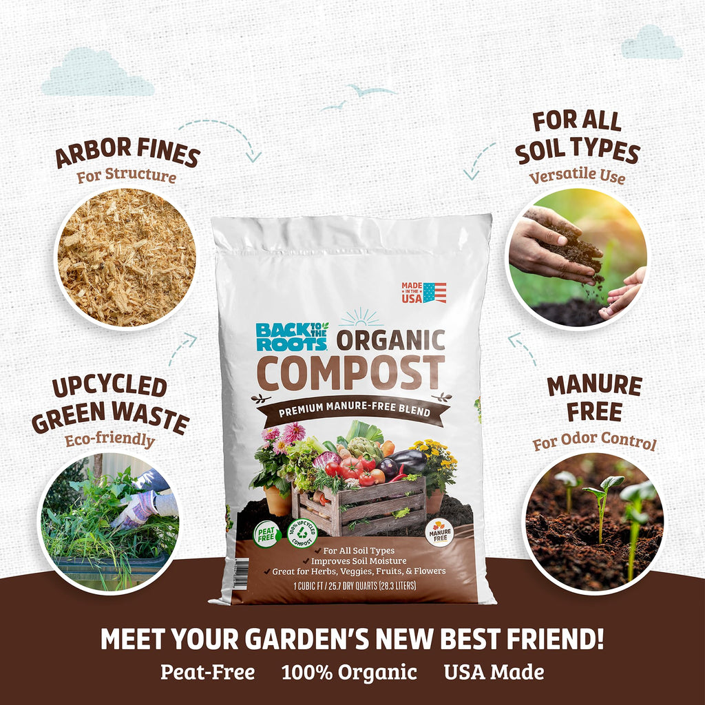 Support your garden with a sustainable, nutrient-rich compost made for thriving plants and eco-conscious growers. Back to the Roots 100% Organic Premium Compost is a peat-free solution that delivers powerful results while protecting the environment.