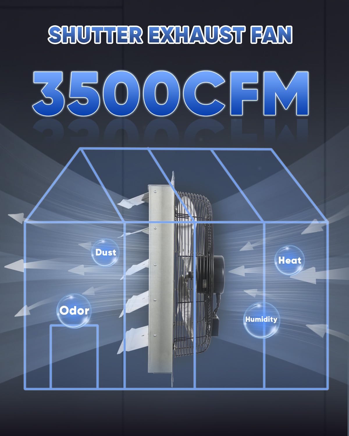 Multipurpose: The Ken Brown 20 Inch Shutter Exhaust Fan is designed to effectively remove heat, moisture, dust, and unwanted odors from residential, commercial, industrial, or agricultural settings. It’s a solid choice for attics, workshops, welding rooms, factories, warehouses, barns, and greenhouses.