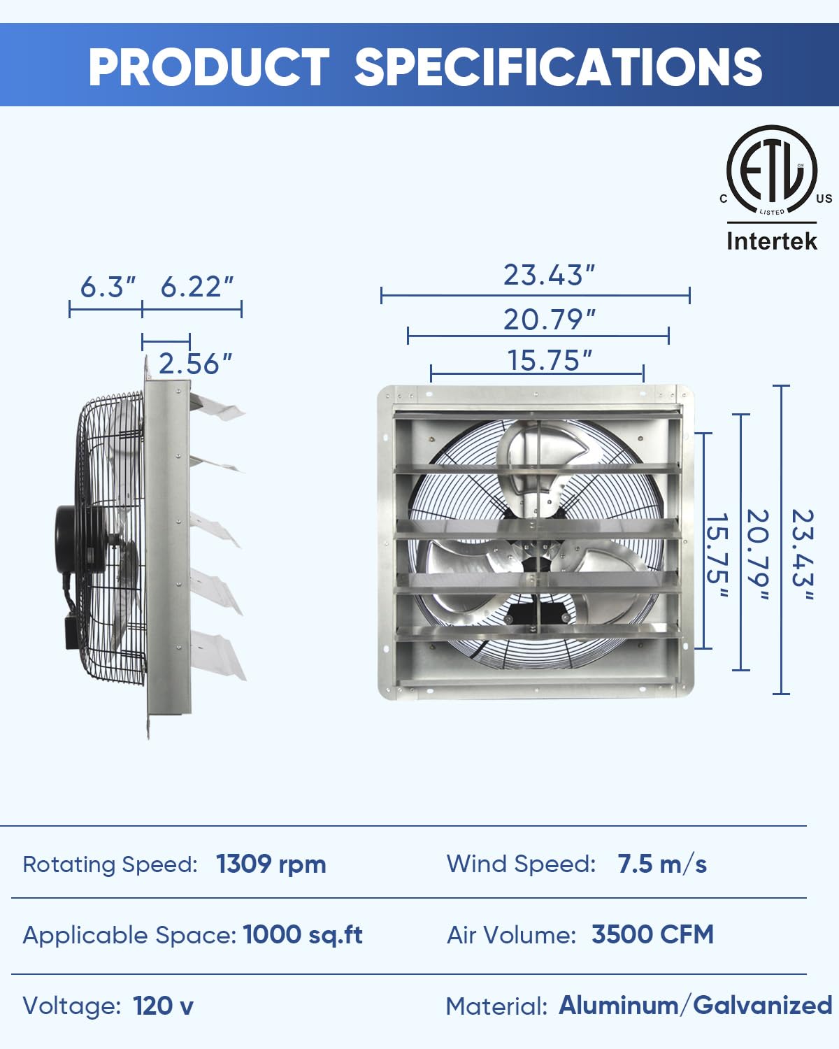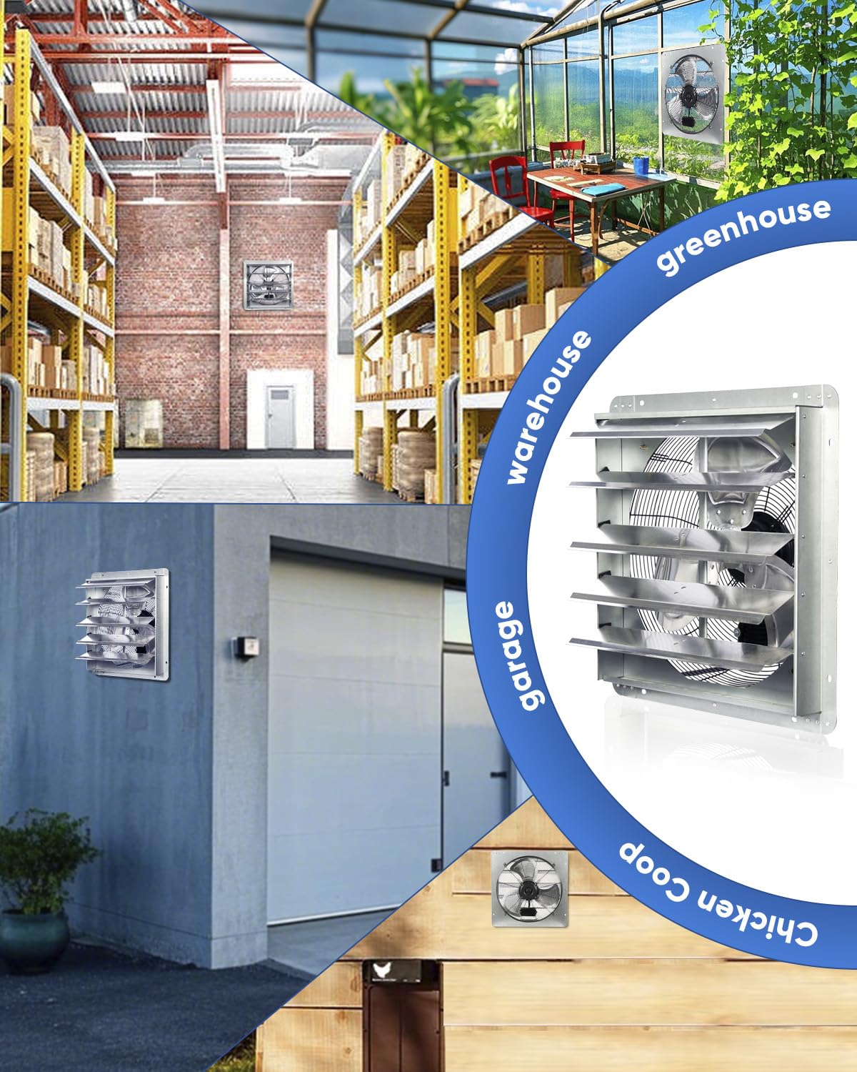20 Inch Shutter Exhaust Fan, Wall Mounted, High Speed 3500CFM