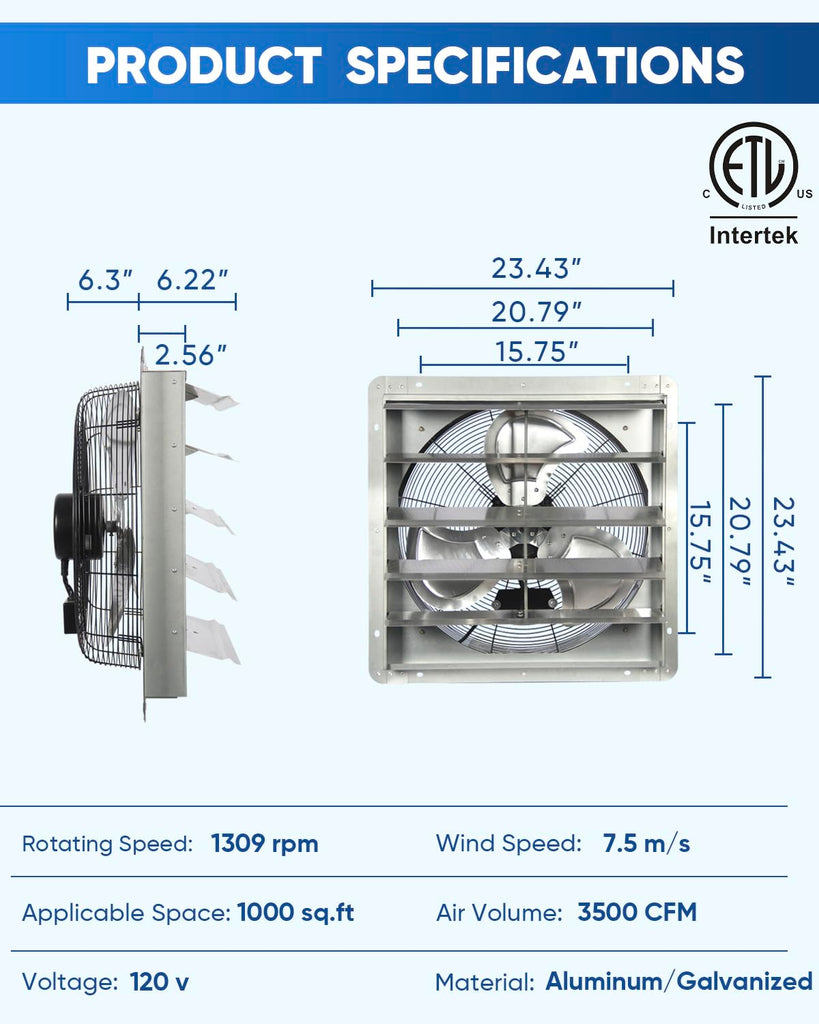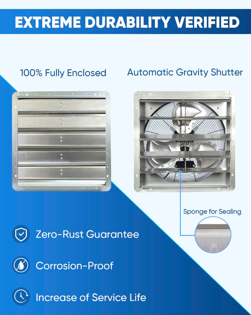 Corrosion Resistant: Constructed with durable, high-grade aluminum shutters and blades, this fan stands up to moisture and high heat without corroding, making it a long-lasting ventilation solution.
