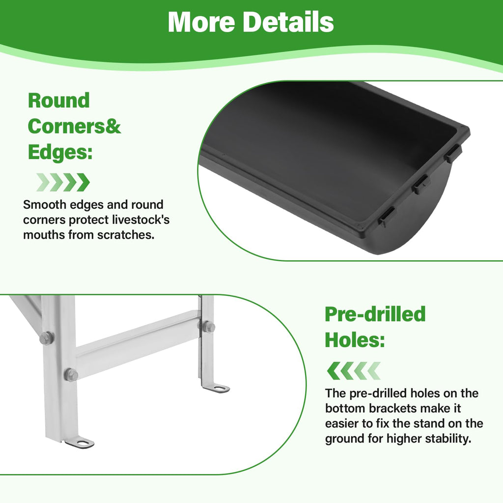 Wide Application: Perfect for farms, barns, and backyards, this feeder is suitable for goats, sheep, pigs, deer, cows, ponies, and horses.