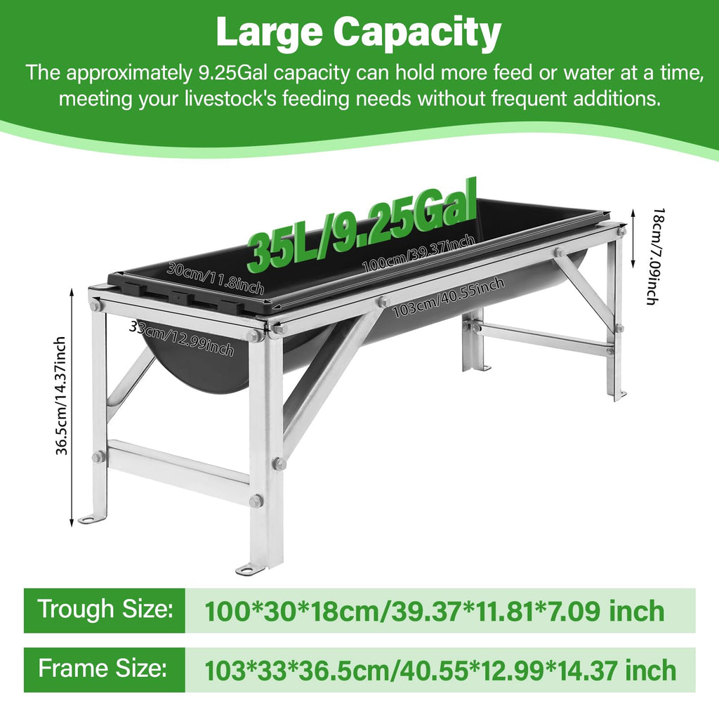 Large Capacity: With a 9.25-gallon (35L) capacity, the trough holds plenty of feed or water, reducing the need for frequent refills and meeting the daily needs of your livestock.