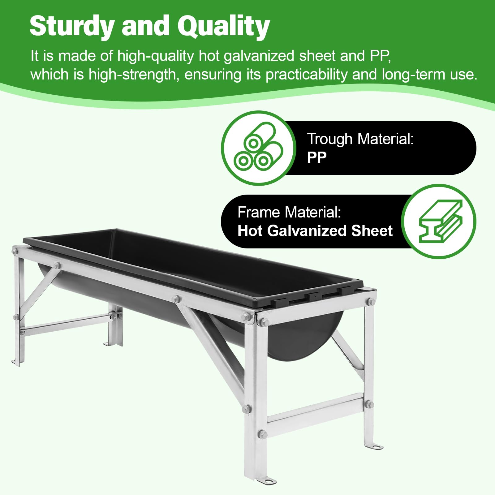 Sturdy and Quality: Made from a combination of high-quality hot-dip galvanized sheet and PP, this feeder offers excellent strength and rust resistance for long-lasting use.
