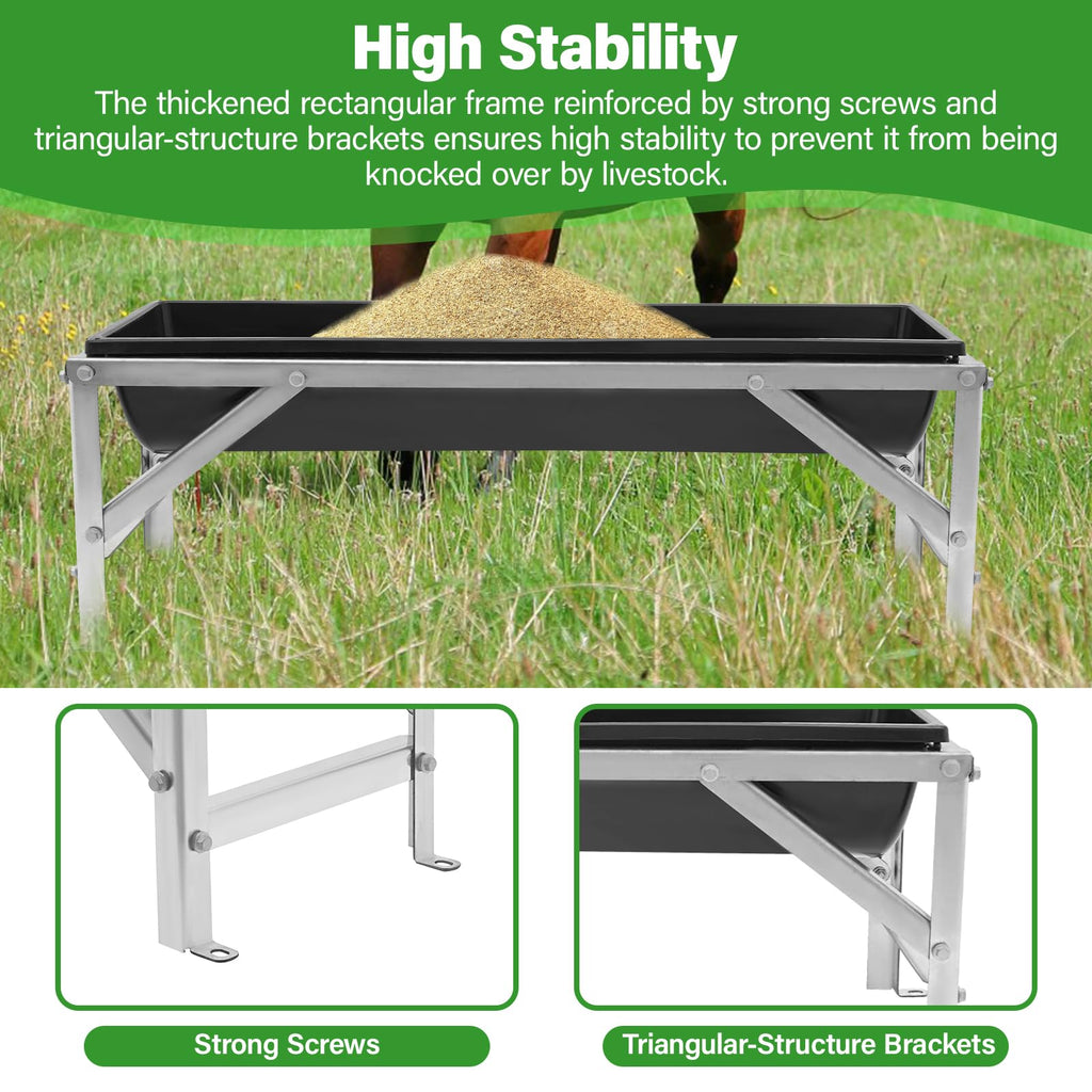 High Stability: A thick rectangular frame reinforced with durable screws and triangular brackets keeps the trough secure and prevents tipping, even with active animals.