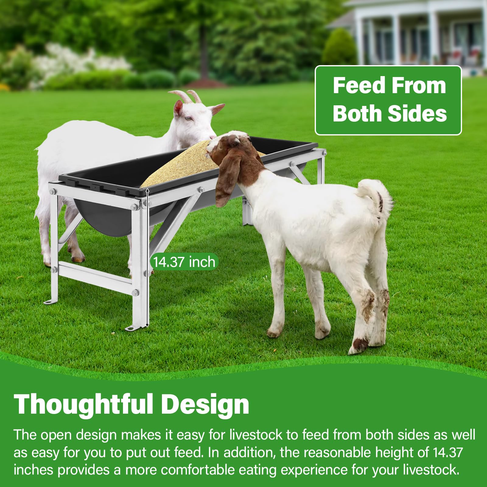 Thoughtful Design: An open-top layout allows animals to feed comfortably from both sides. Its 14.37-inch height is ideal for easy access and a more natural feeding position.