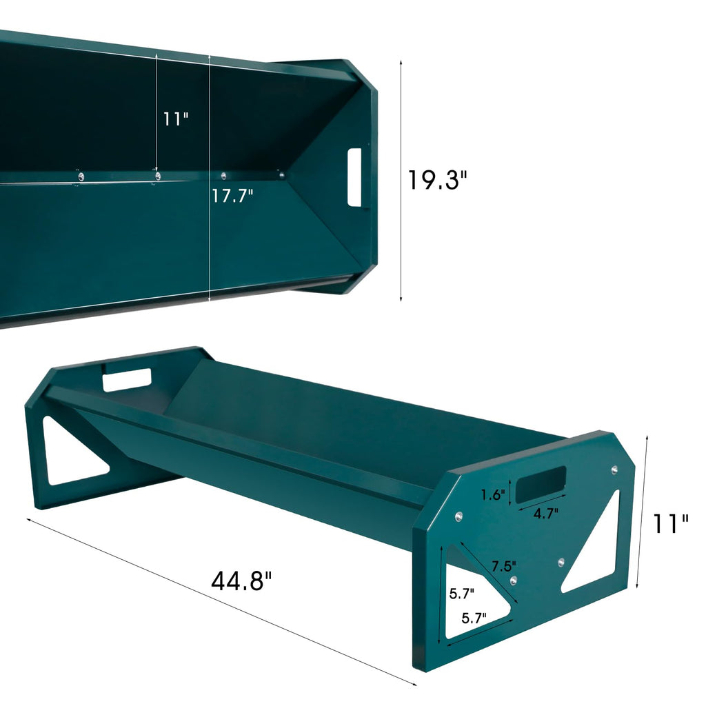 Large Capacity: Measuring 45" L x 20" W x 11" H, this trough holds approximately 22 gallons of grain—enough to feed up to 10 sheep at once. The inverted triangle opening makes refills quick and easy.