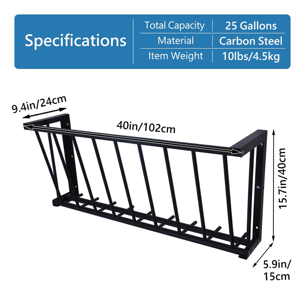 Details: BUYYAH 25 Gallon Wall Mount Hay Rack is the great way to keep horses all day and night. Item Size (L x W x H): 40 x 8 x 15.7 in. BUYYAH Wall Mount Hay Rack is the great way to keep horses all day and night.