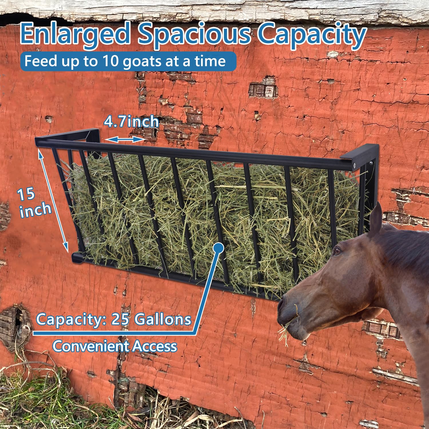 - Thoughtful Design: This goat hay rack is multiple sided, ensuring a spacious eating space. Large openings make your livestocks have an unhindered eating. 5 goats can eat at the same time.