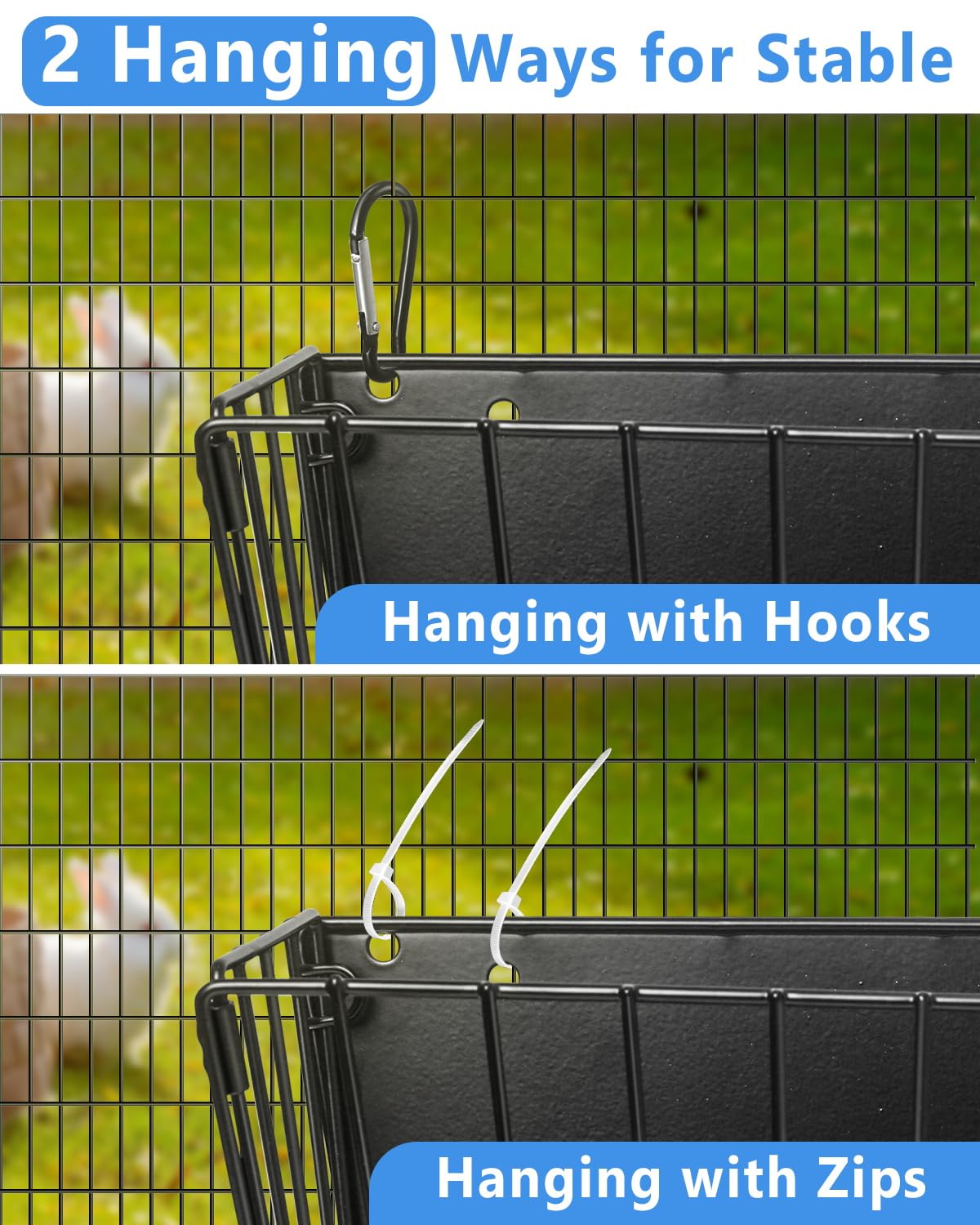 Package Included: The set includes 1 metal hay feeder, 2 durable hanging hooks, and 6 straps for extra stability. Designed to promote natural foraging instincts, this feeder helps reduce boredom and supports healthy behavior in rabbits and guinea pigs.