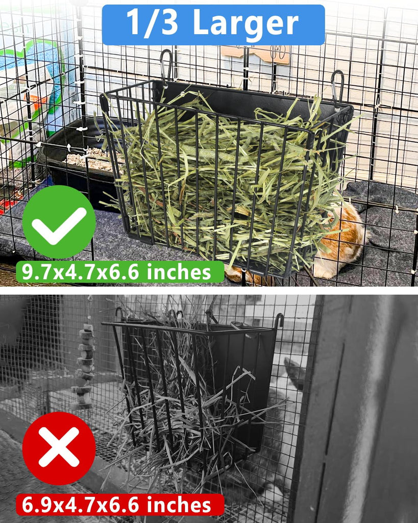 X-Large Bunny Hay Feeder: Sized at 9.7 x 4.7 x 6.6 inches, this upgraded hay feeder holds more hay, reducing refill frequency. The sealed bottom helps keep hay contained, minimizes waste, and prevents rabbits from scattering or soiling their food for a tidier feeding experience.