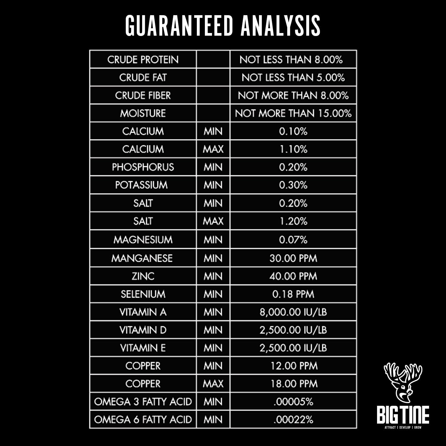 Nitro Mineral & Vitamin Supplement: Features Big Tine’s exclusive Nitro blend to deliver vital minerals and vitamins for herd development and immune support.