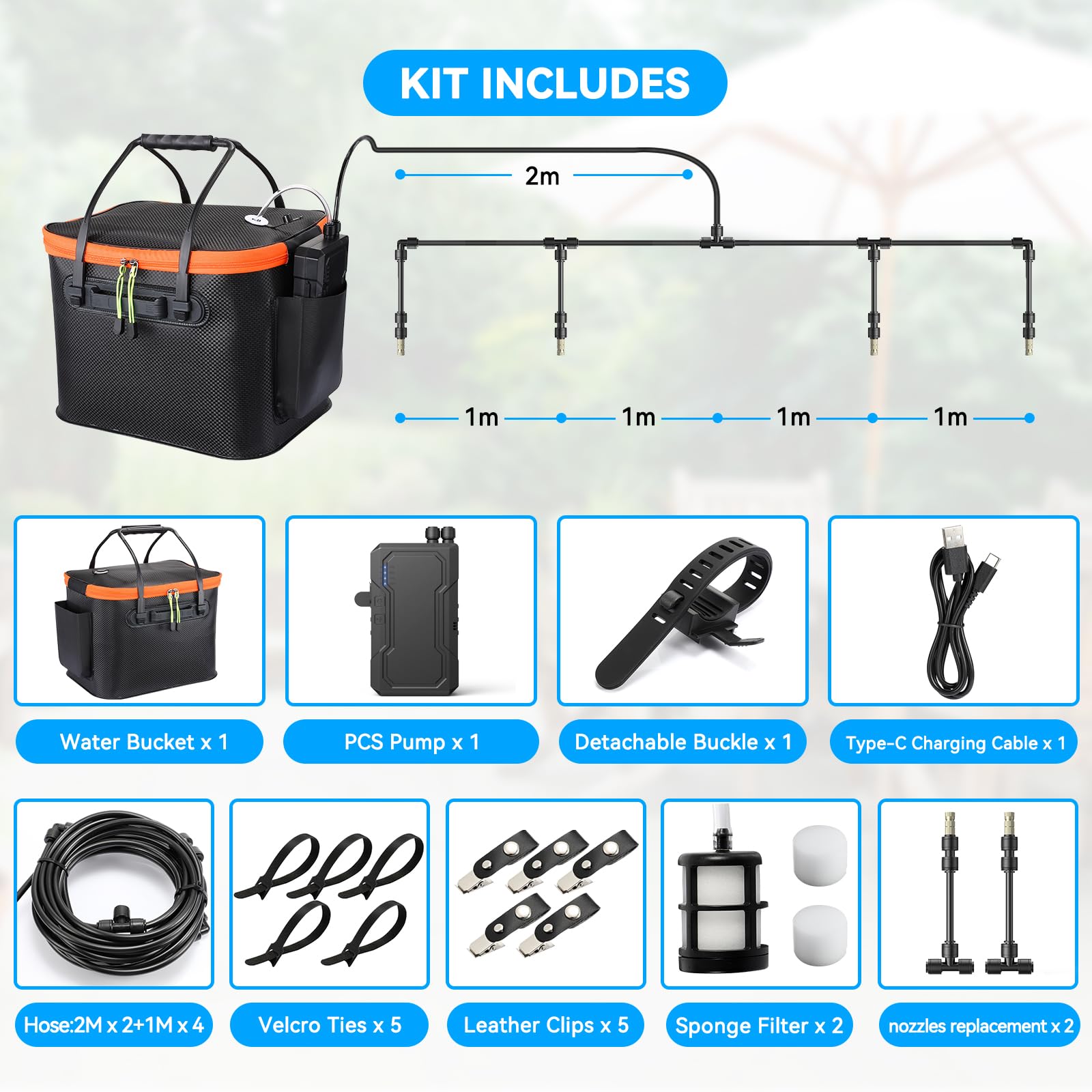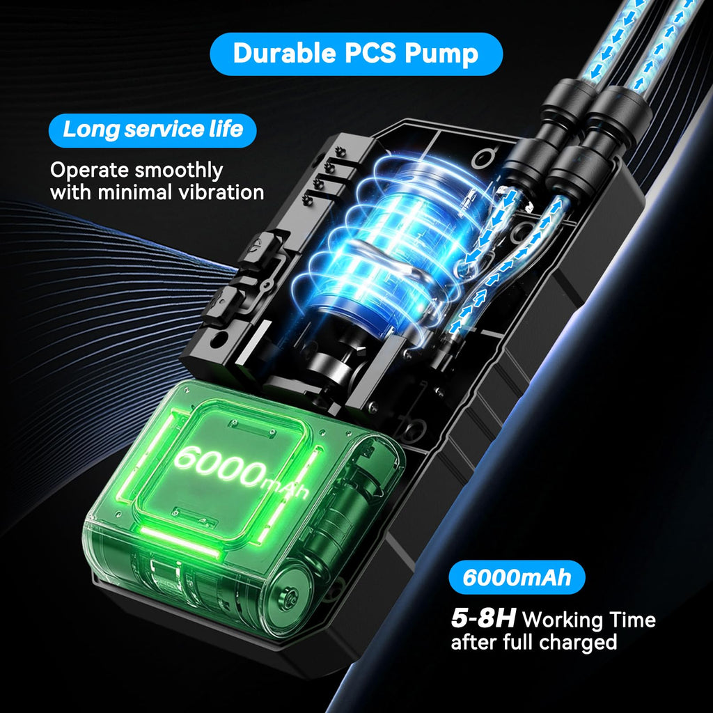 6000mAh PCS Pump: Features a German-engineered pump and a built-in 6000mAh rechargeable battery that delivers 5–8 hours of continuous misting—ideal for extended outdoor use.