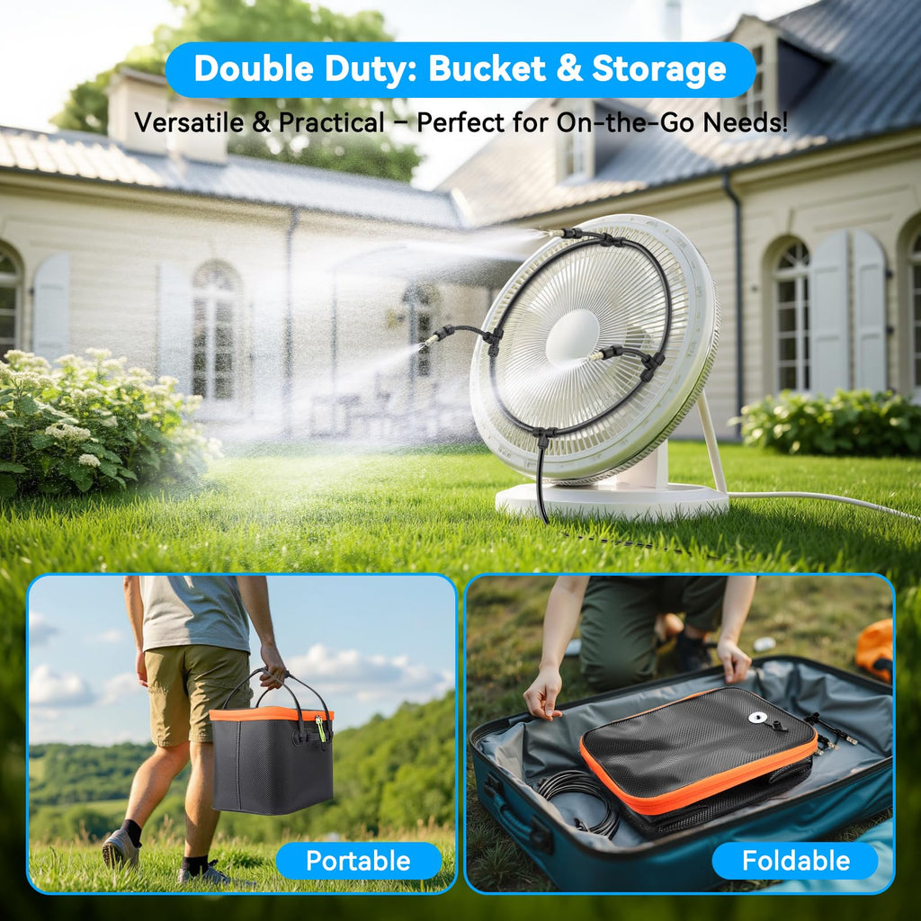 Dual-Purpose Water Bucket: Includes a collapsible 20L waterproof bucket that serves as both a water tank during use and a convenient storage case when packed away.