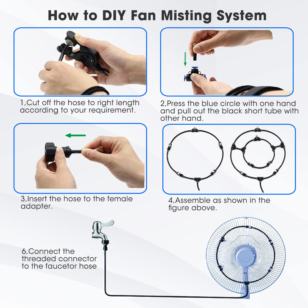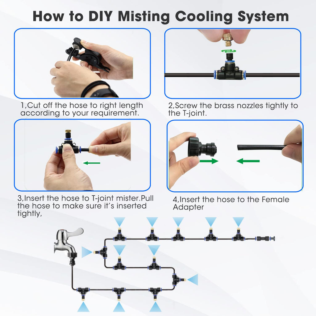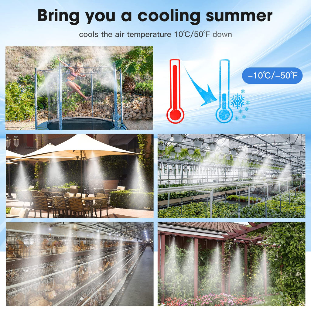 Great Atomization Effect: Equipped with upgraded brass nozzles that produce fine, uniform mist. Effectively absorbs heat from the surrounding air to cool your outdoor area.