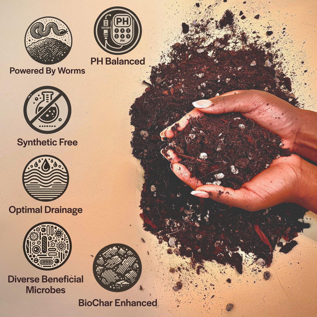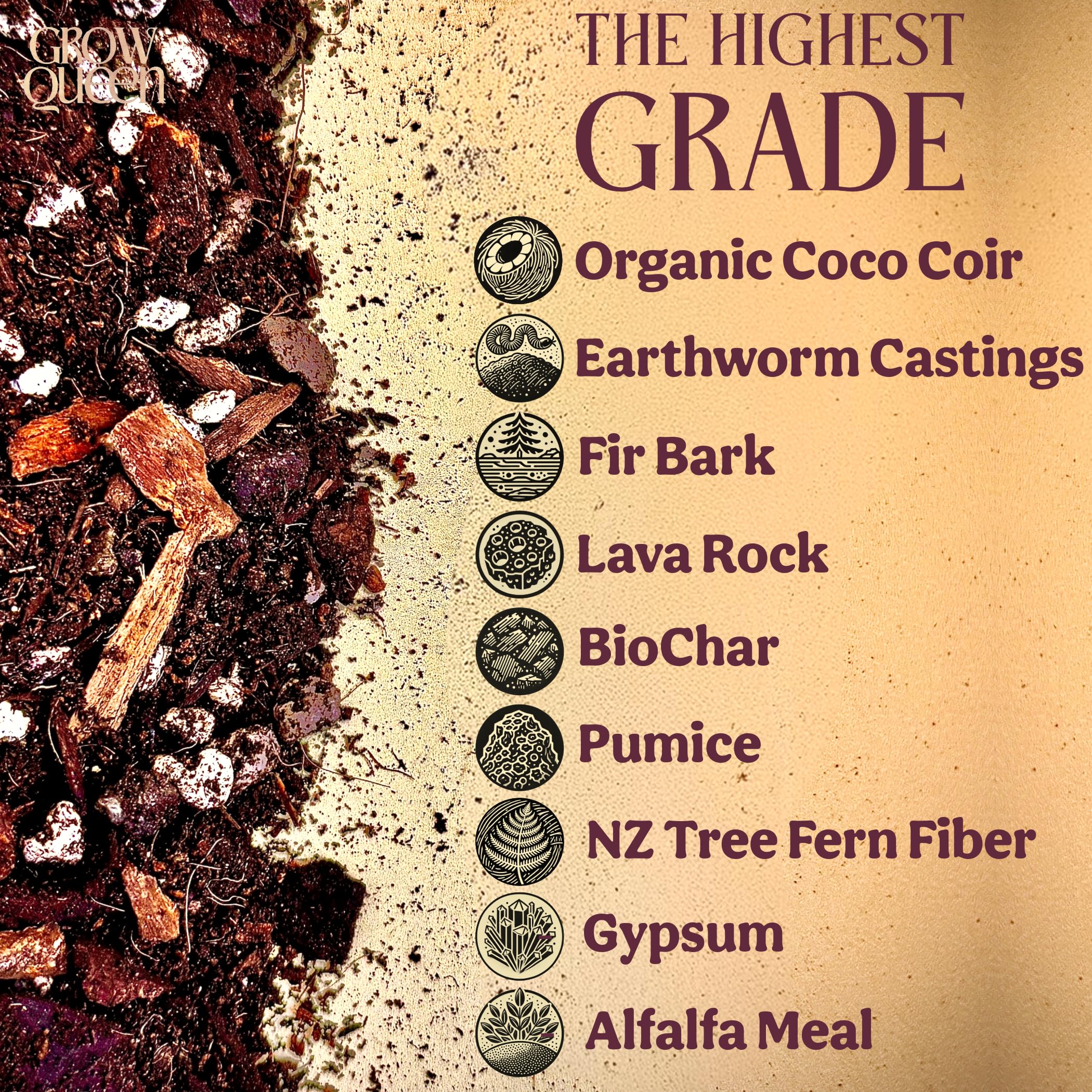 Nutrient Rich & Plant Food Compatible: Packed with living beneficial microbes, essential nutrients, organic matter, and worm castings, this mix works seamlessly with Grow Queen Organic All-Purpose Plant Food to encourage robust, healthy growth.