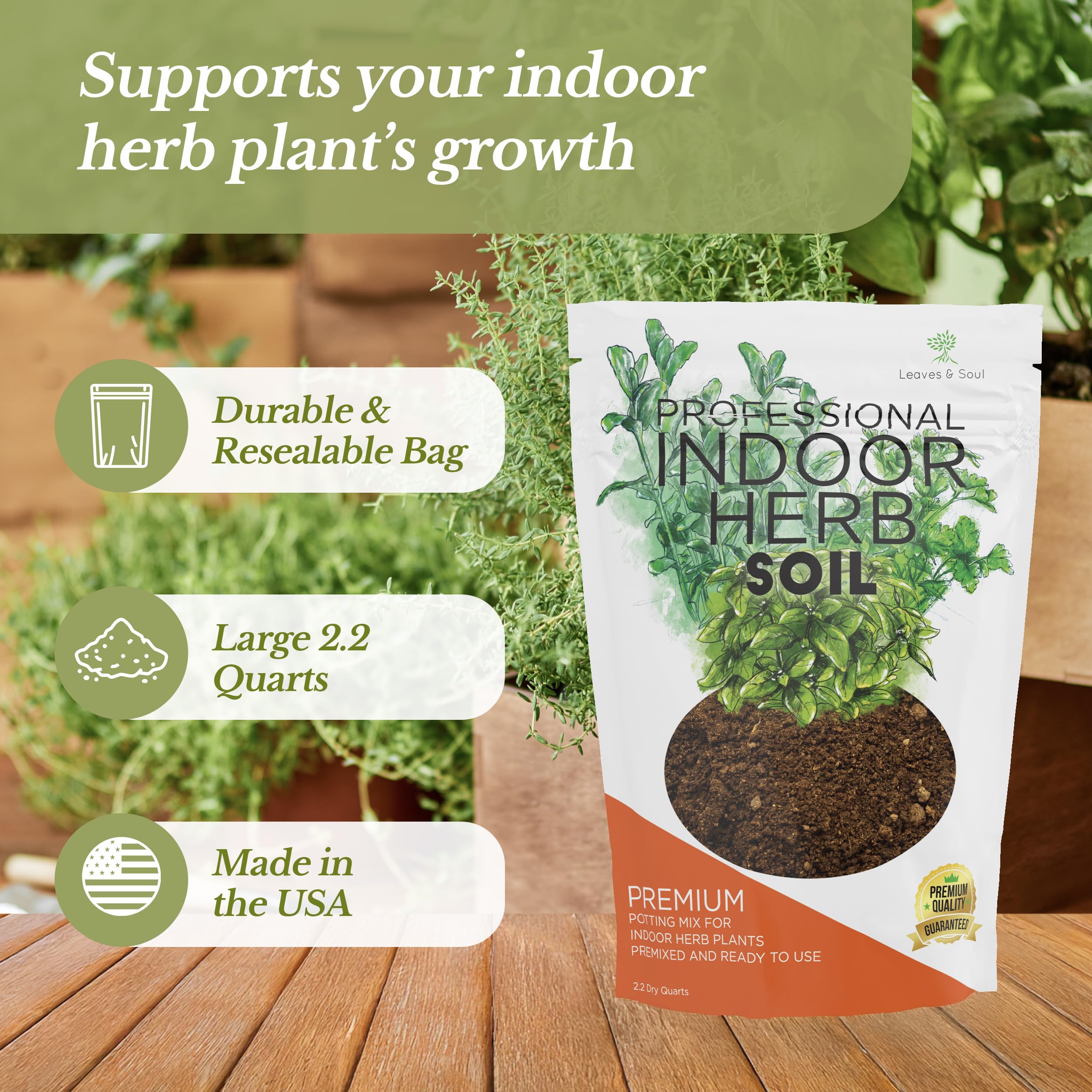 Leaves And Soul Indoor Herb Plant Soil is specially crafted to provide herbs with the environment they need to grow strong and healthy. With a premium, ready-to-use blend, it makes indoor herb gardening simple and effective.
