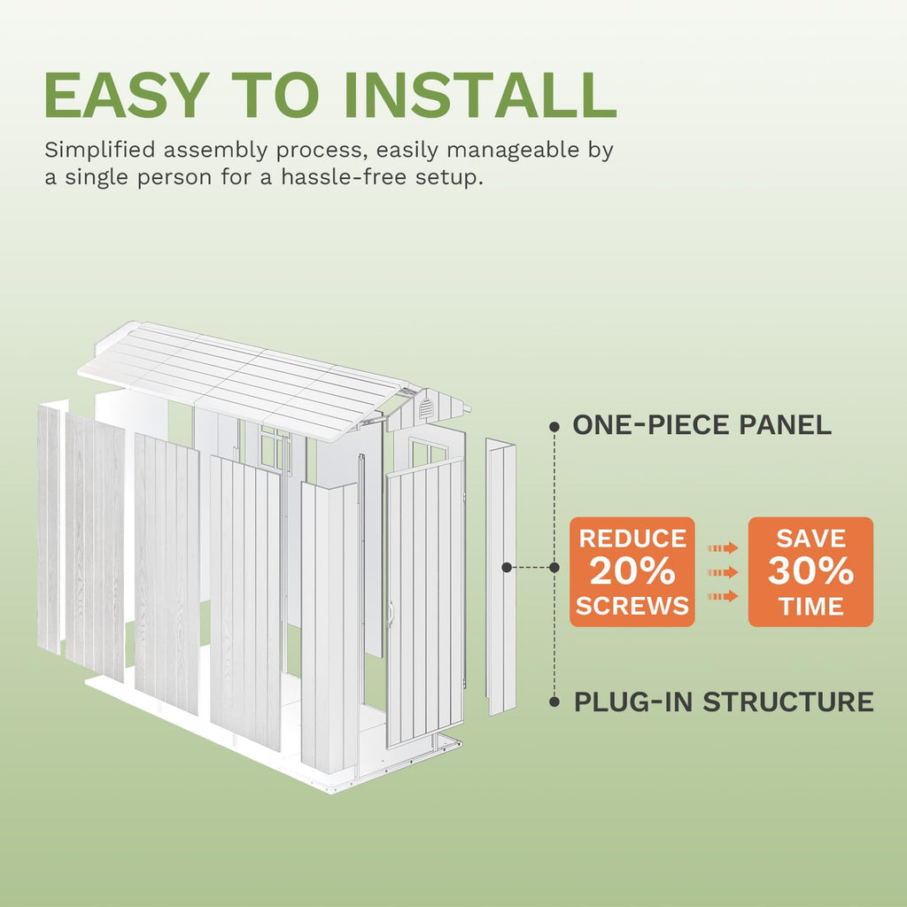 Durability: Built with tough resin panels, this shed is designed to withstand harsh outdoor conditions. Its windproof construction resists damage and ensures your outdoor essentials stay protected.