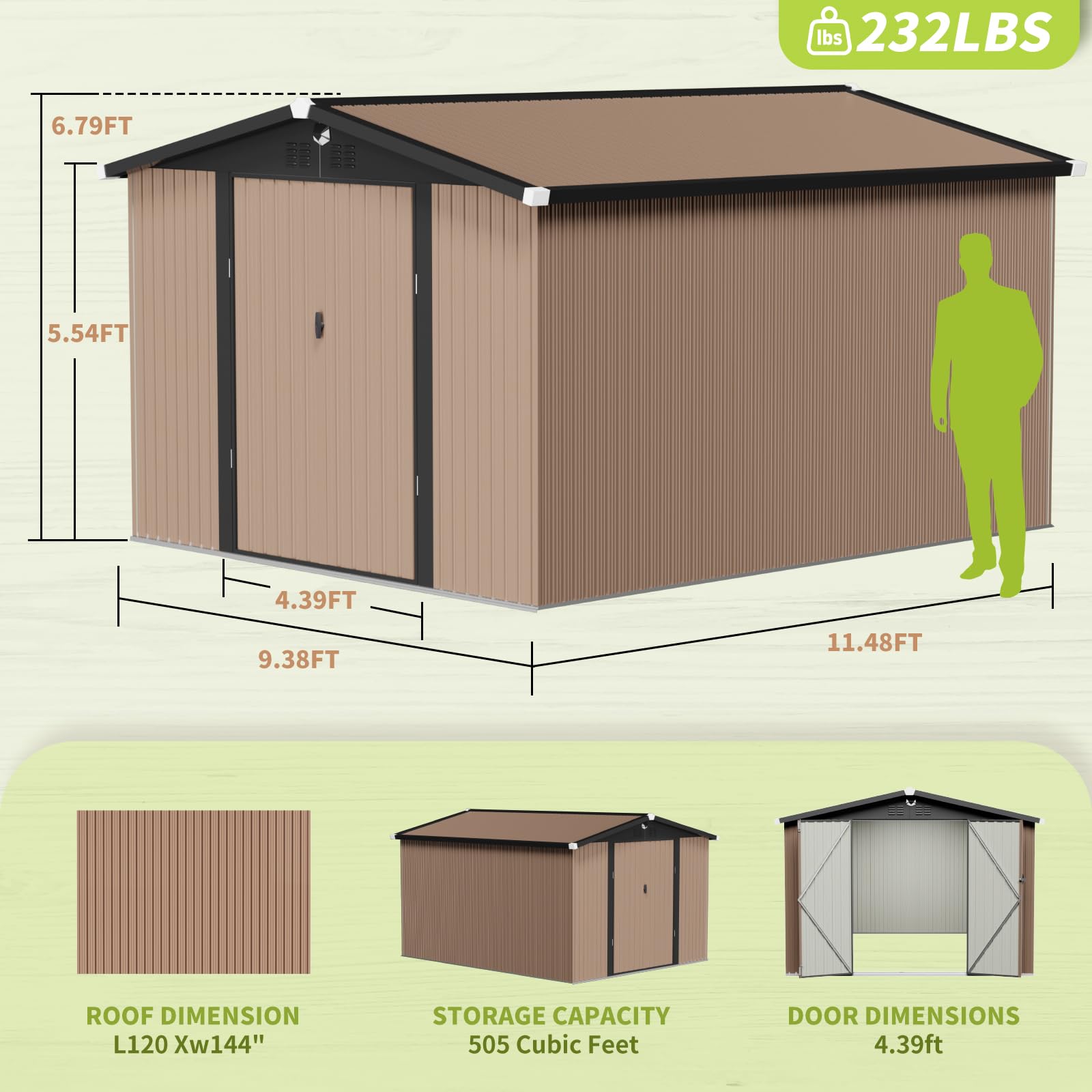 Extra Spacious Shed: Measuring 120" L x 145" W x 86.61" H, this 10x12 FT shed offers significantly more room than traditional models, giving you ample space to organize large items, yard gear, or hobby equipment. Whatever you’re storing, this shed offers the capacity and flexibility to meet your needs.