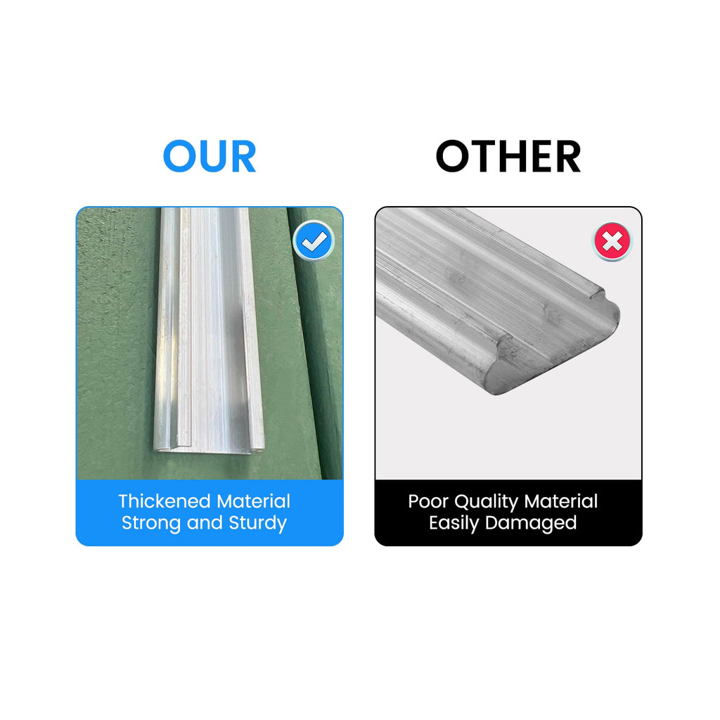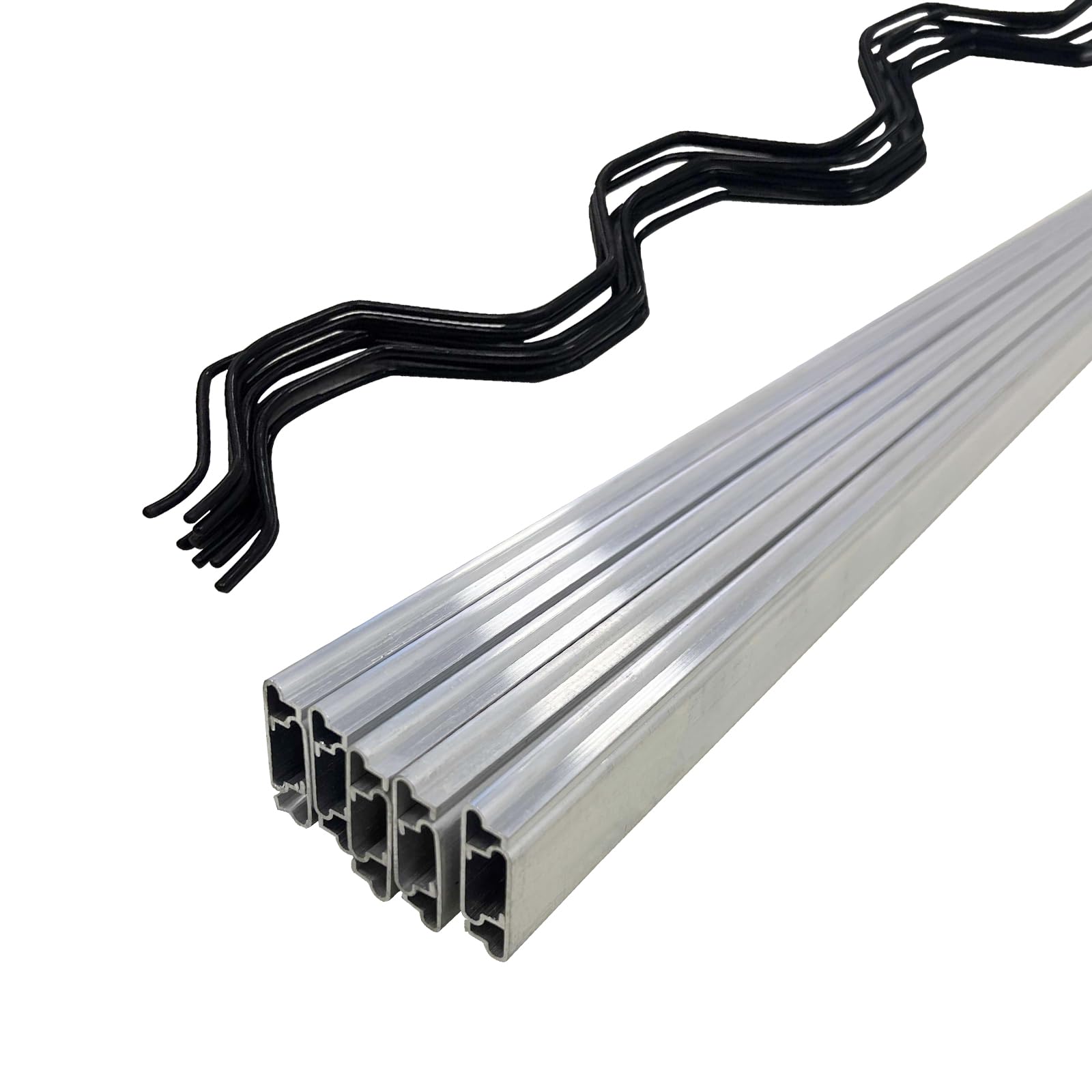 Size and Quantity: Includes 10 aluminum alloy lock channels and 10 PVC-coated spring wires. Each U-shaped channel measures 78.74 inches long, 1.25 inches wide, 0.5 inches high, and 1mm thick.