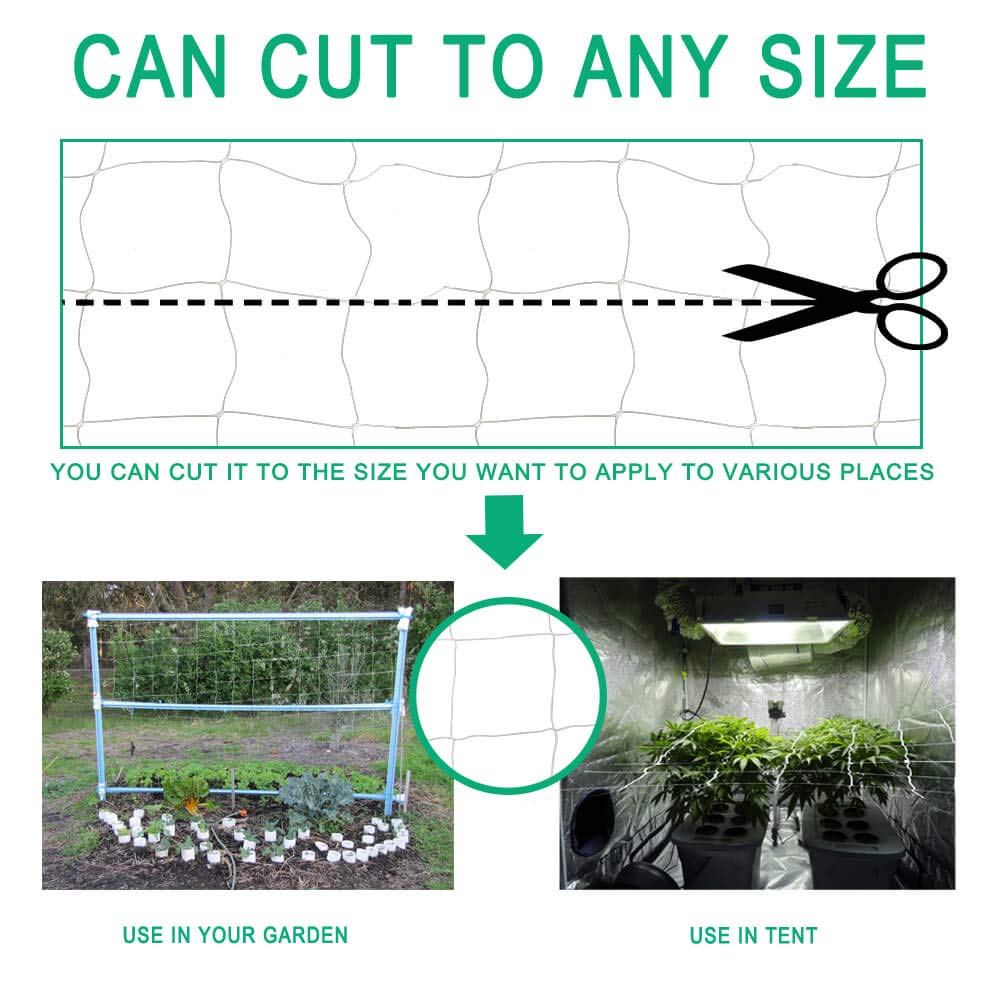 Easy To Install: Wrap the netting around any stable frame and pull it tight. Works great for both vertical and horizontal growing methods.