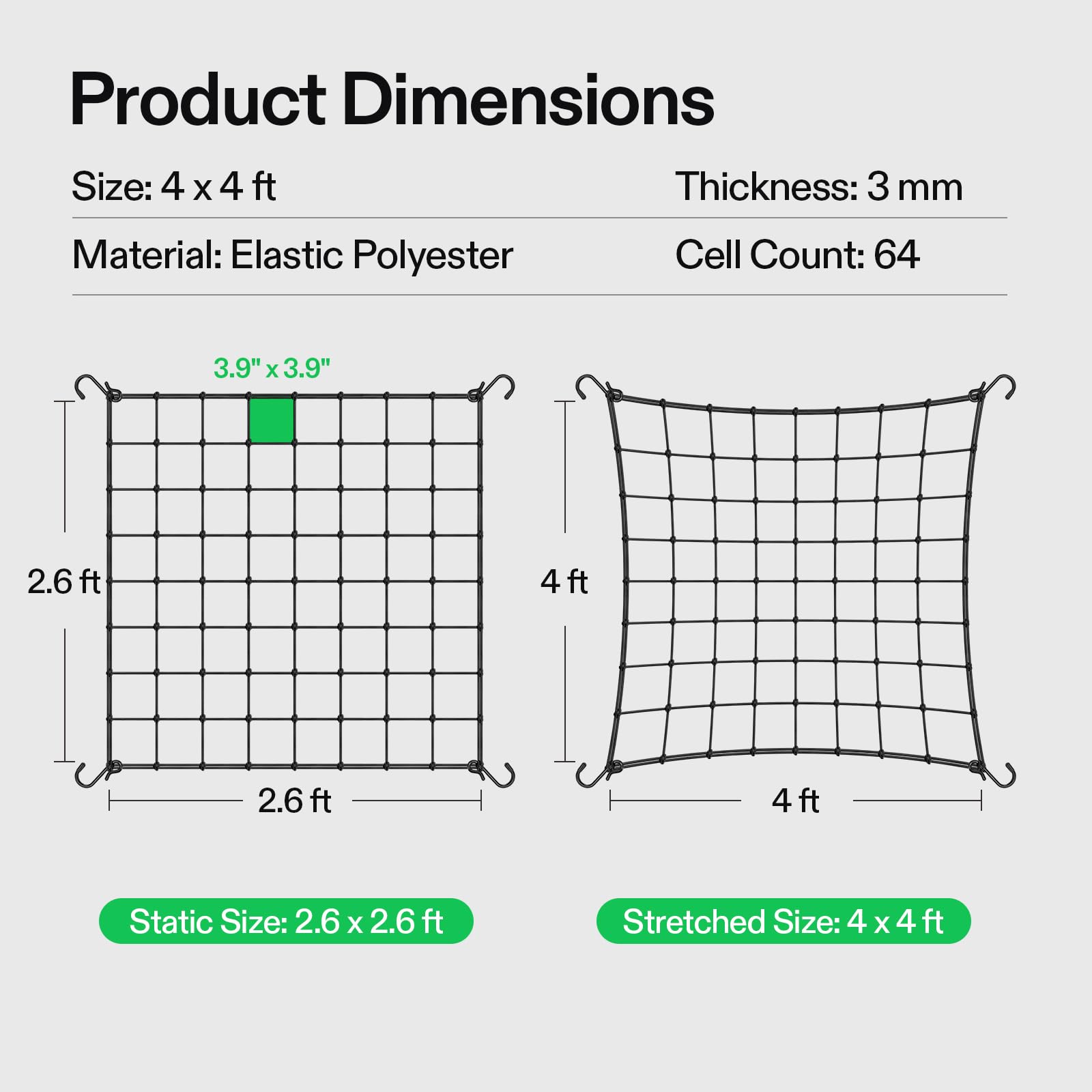 Easy to Install and Adjust: The 4x4 ft. net can be cut to fit your setup. Simply wrap and tie around any stable support—no unraveling or slipping.