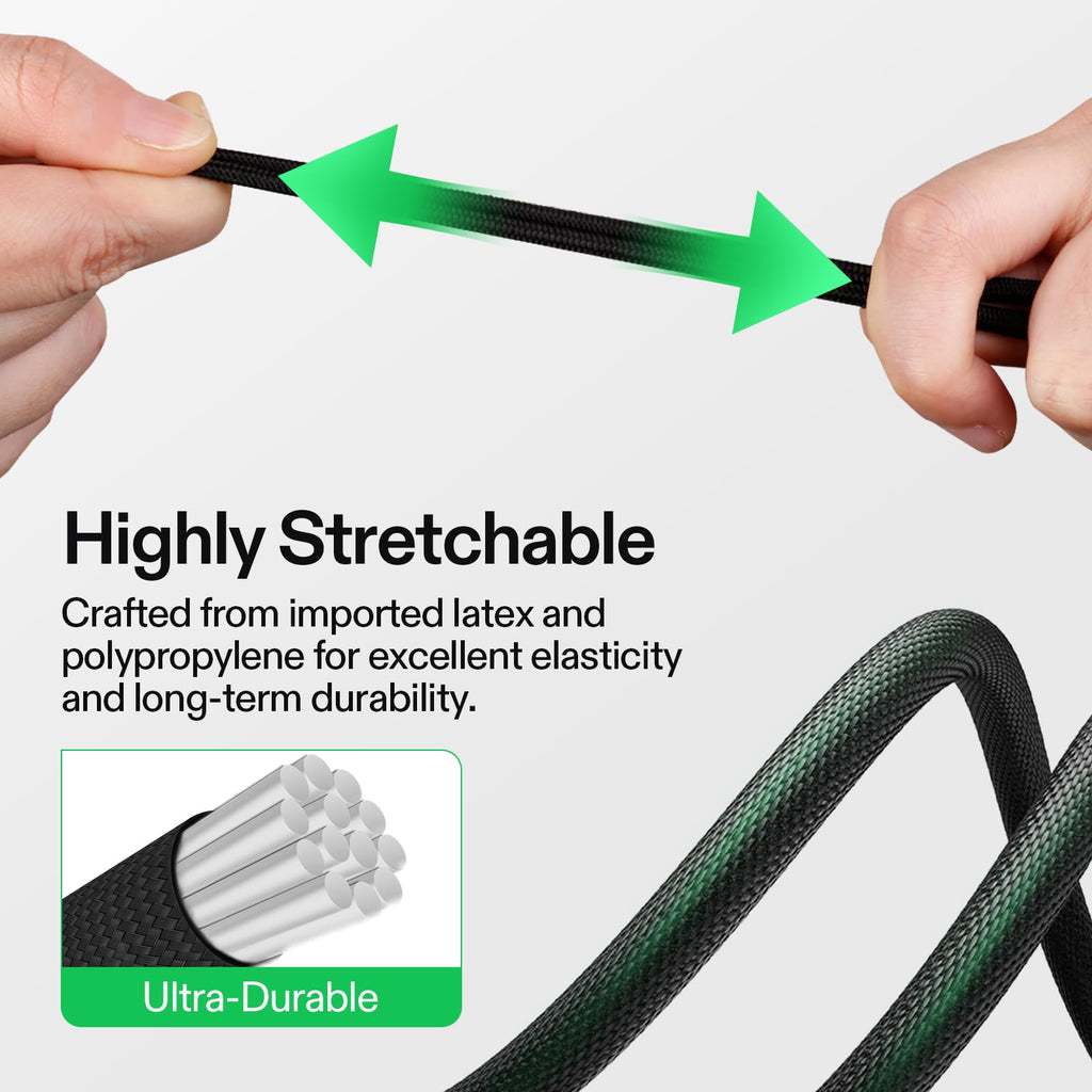 Reusable and Versatile: Made with 3mm ultra-durable elastic thread in a fabric cover and includes four rustproof 22mm "S" hooks. Folds compactly for easy storage.