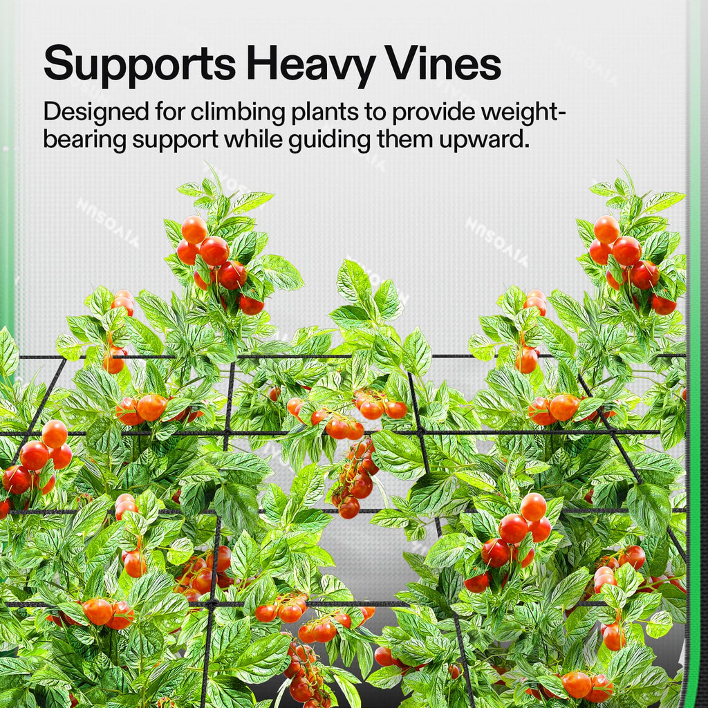 Strong Support: This sturdy netting holds the weight of cucumbers, tomatoes, peas, cantaloupes, blackberries, and other vines with reliable stability.
