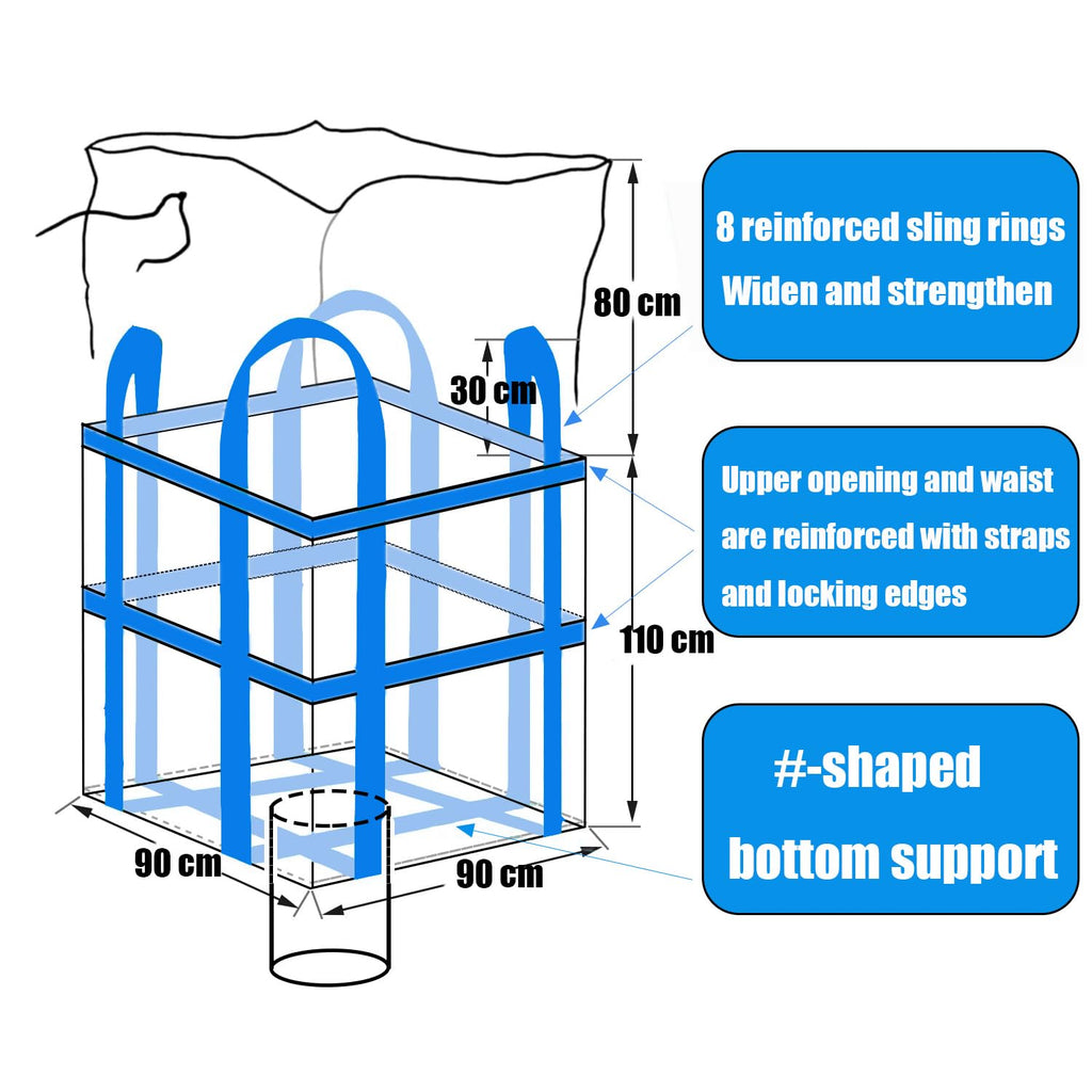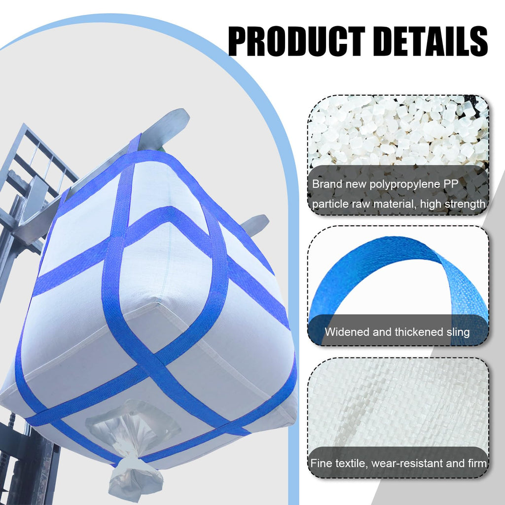 Spacious Size, Spout Bottom, Meet More Needs: Measuring 35.4 x 35.4 x 43.3 inches with a duffle top and spout bottom, this bag makes material release efficient and controlled - ideal for packaging, storing, and transporting various bulk materials across industries.