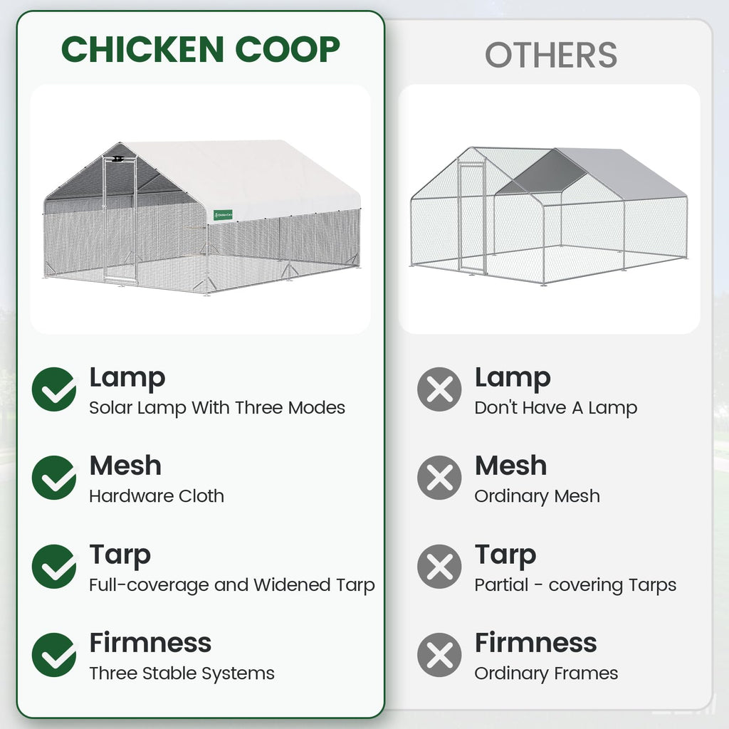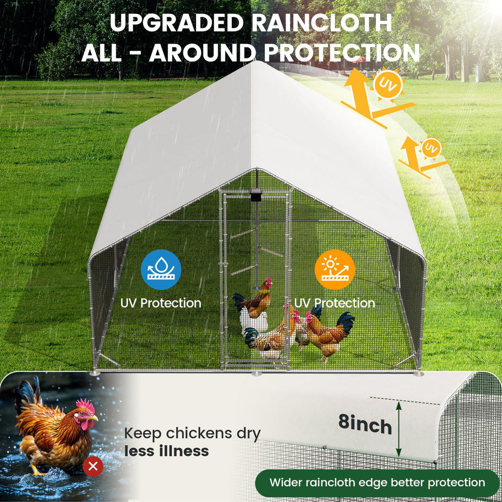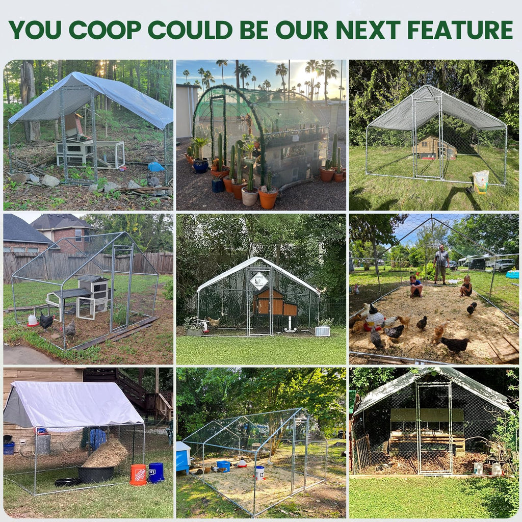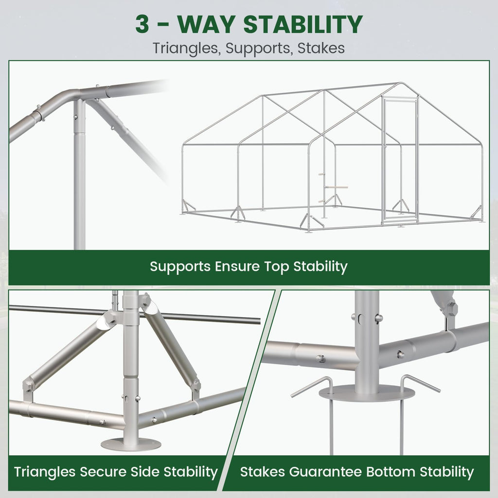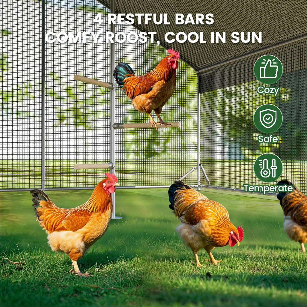 Military-Grade Protection: Built with heavy-duty steel frames designed to withstand extreme weather. Reinforced base plates, durable roof supports, and included ground stakes create steady anchoring that stands strong against storms, predators, and active chickens. This ensures long-lasting stability and peace of mind.