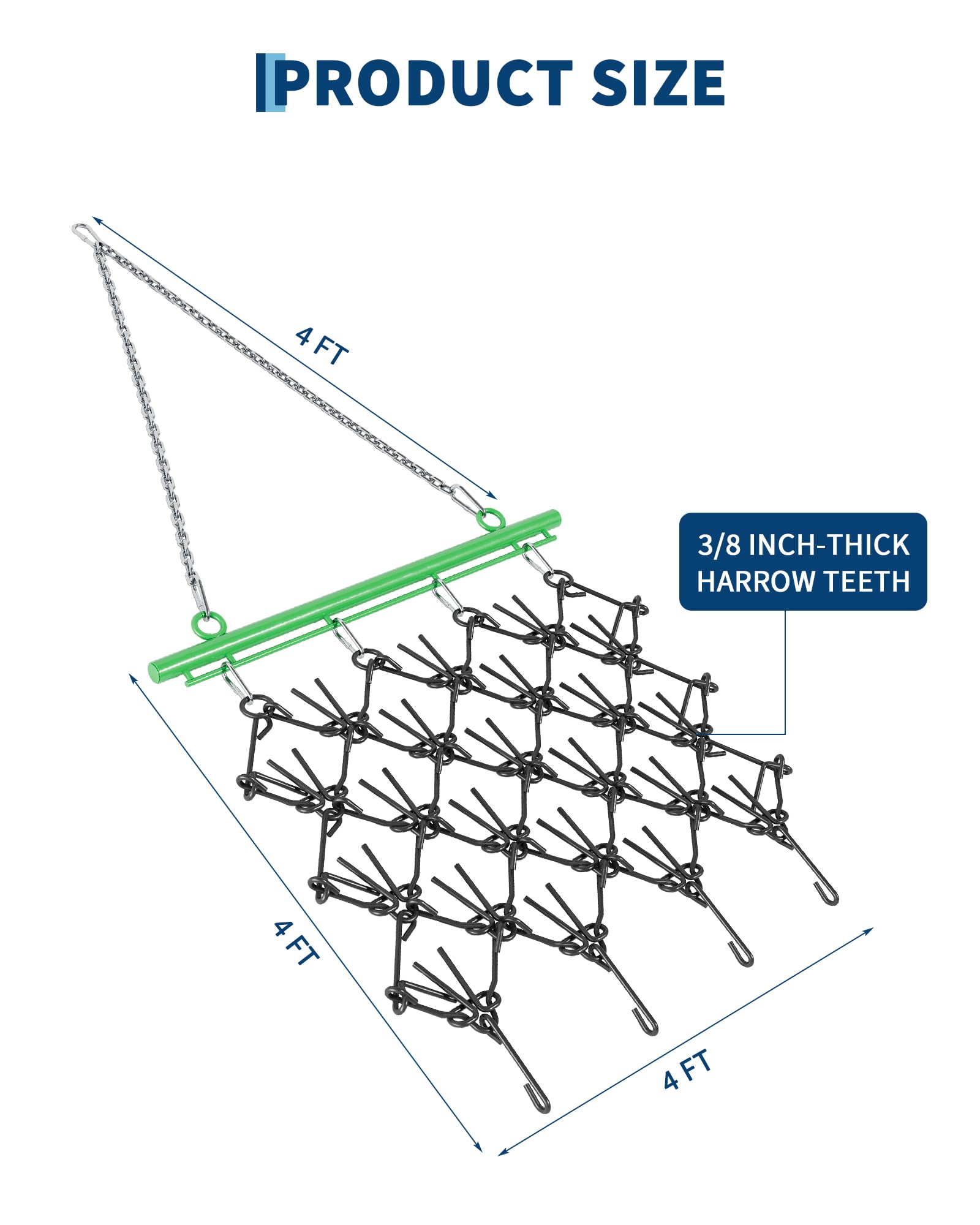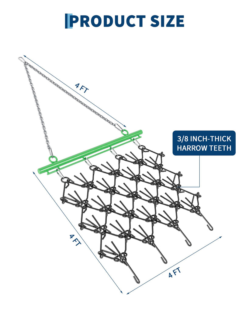 Heavy Duty Chain Harrow 4'x4', 3/8" Tines