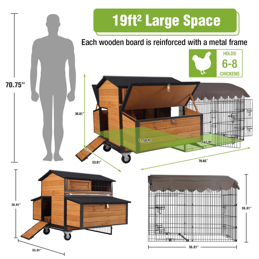 19 ft² Spacious Living Space: Offering ample room, this design comfortably houses 6 to 8 chickens. It gives your flock a safe and open environment to move, rest, and thrive.