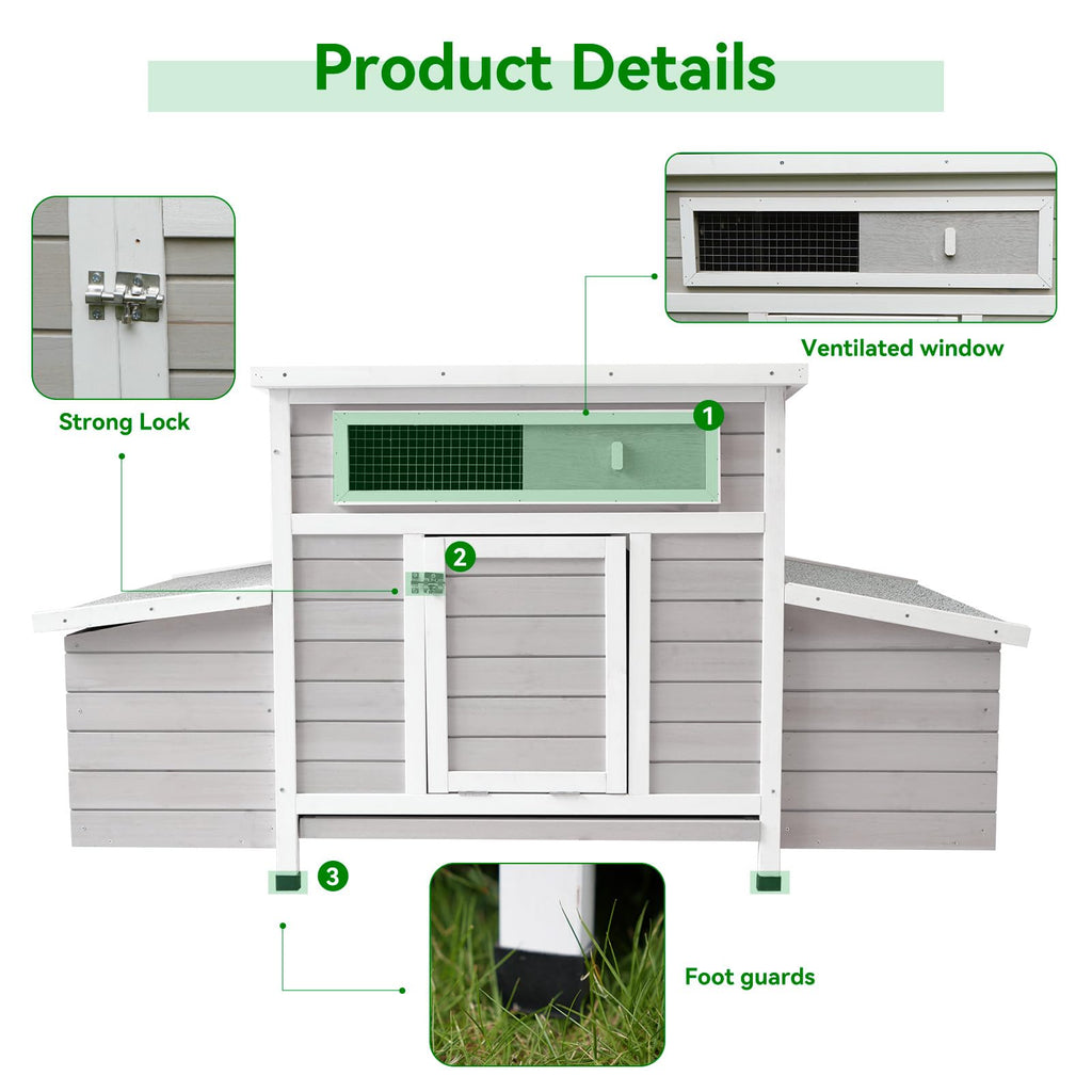 Waterproof Roof: Asphalt roofing keeps poultry warm and dry during rain or cold weather while offering shade in hot conditions. Built from solid fir wood with water-based paint, the coop is sturdy, durable, and safe for poultry.