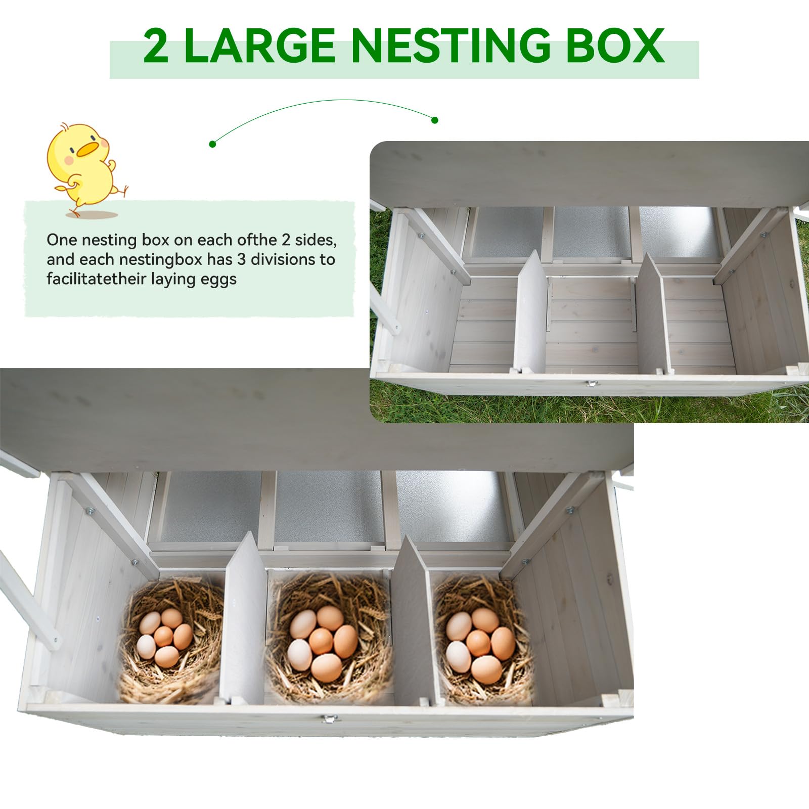 Multiple Access Doors & 6 Nest Boxes: With dual doors, you can easily tend to chickens or ducks and collect eggs without hassle. The nesting box door provides convenient egg retrieval without disturbing the hens.