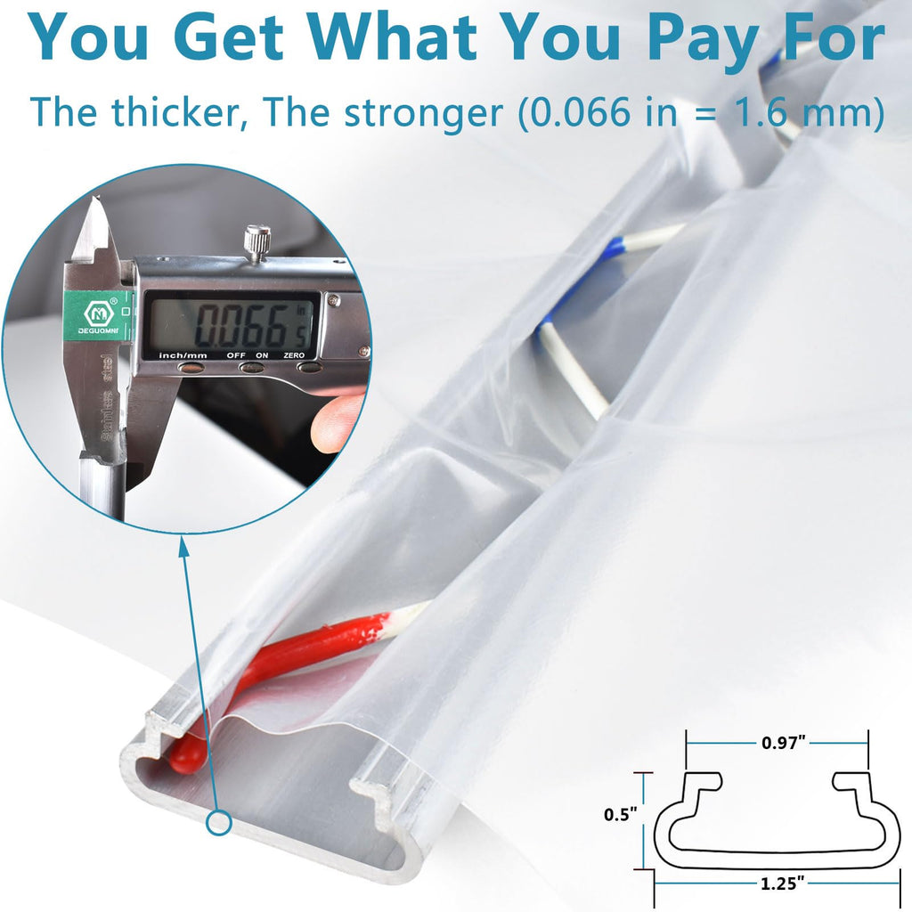 High Quality Construction: Made from aluminum-alloy lock channels with PVC-coated spring wire. Each piece measures 6.6 ft long, 1.25" wide, 0.5" high, with 1/16" wall thickness and 1.14" inside channel width.