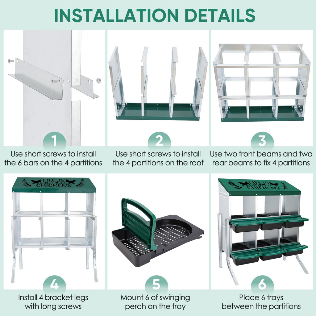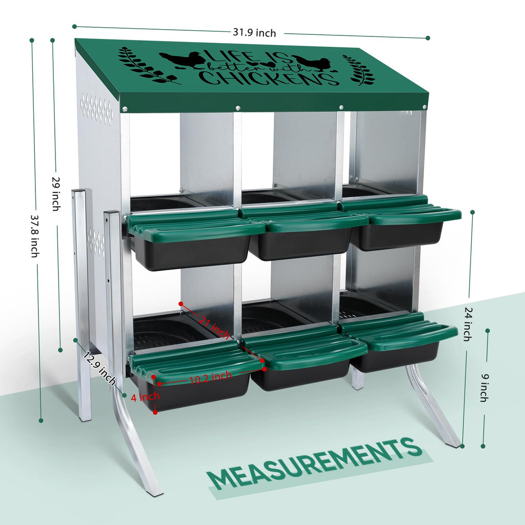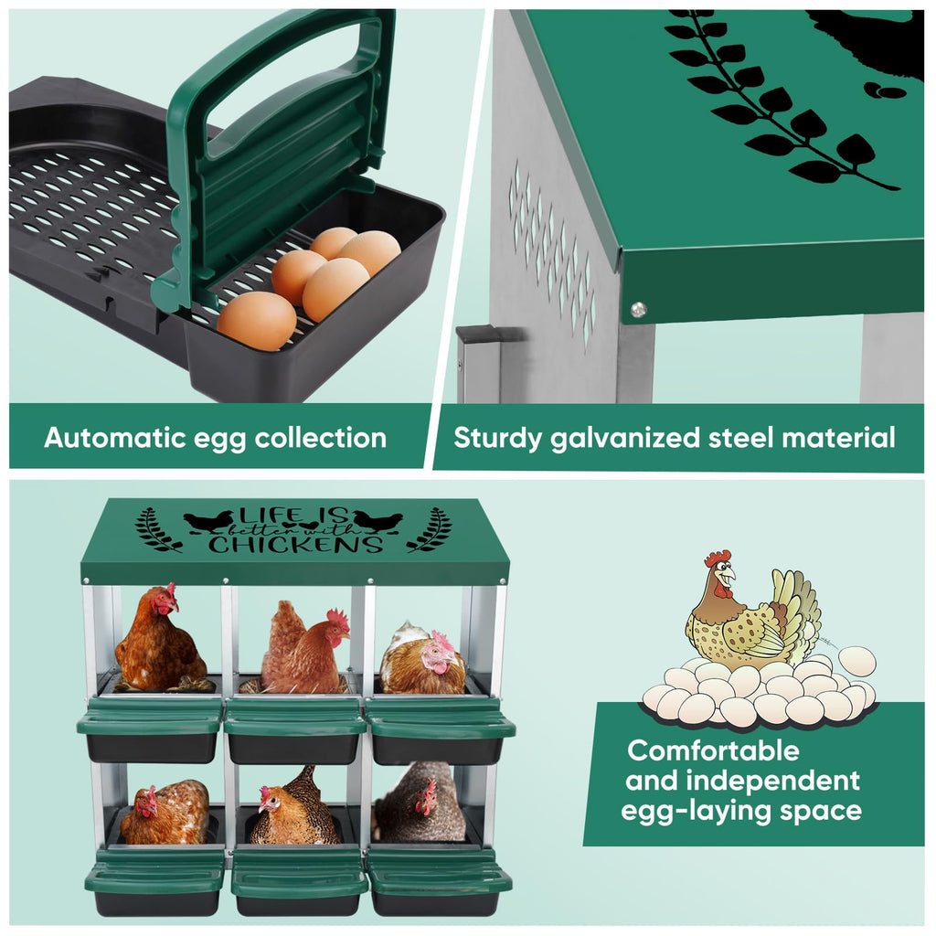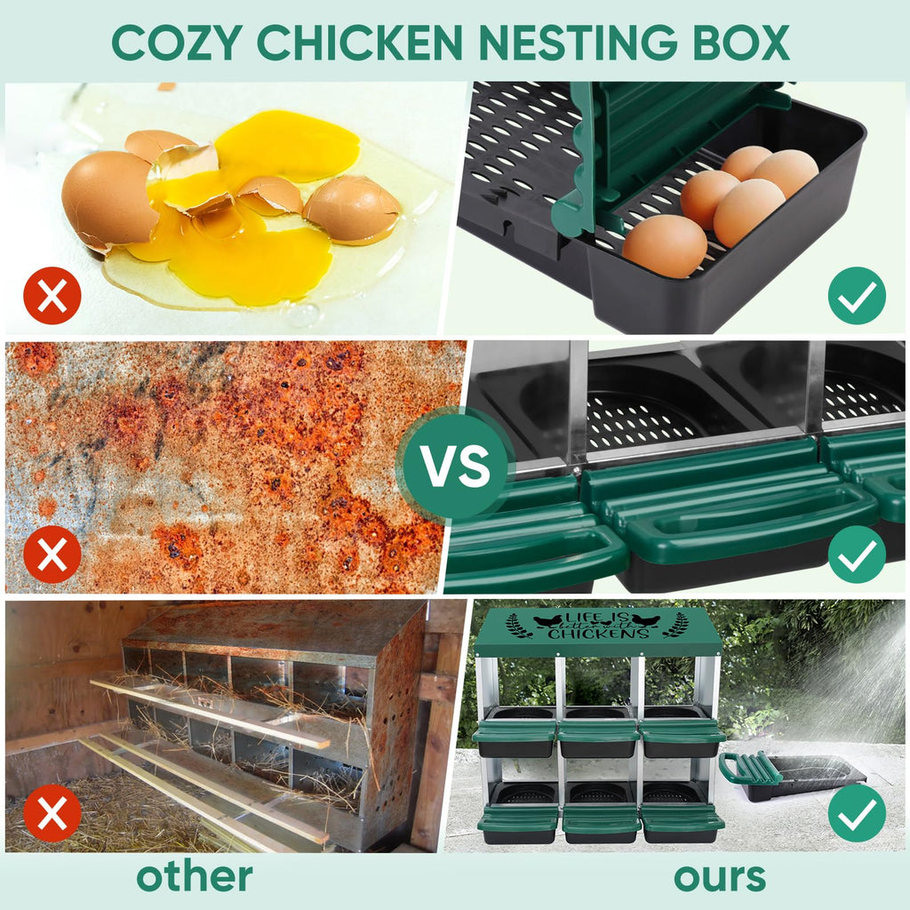 Happy Laying Eggs: The Tgeyd nesting box includes six comfortable, sheltered egg-laying compartments designed to create a safe and relaxing environment for your hens. Better comfort means more eggs and happier chickens.