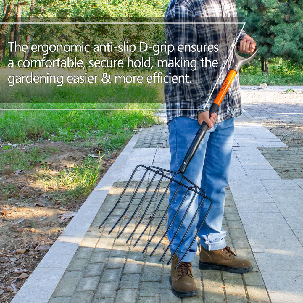 Dimension: Measuring 45 inches long and weighing 6 pounds, this pitch fork gives you the leverage and control needed to lift and turn heavy materials without excess fatigue.